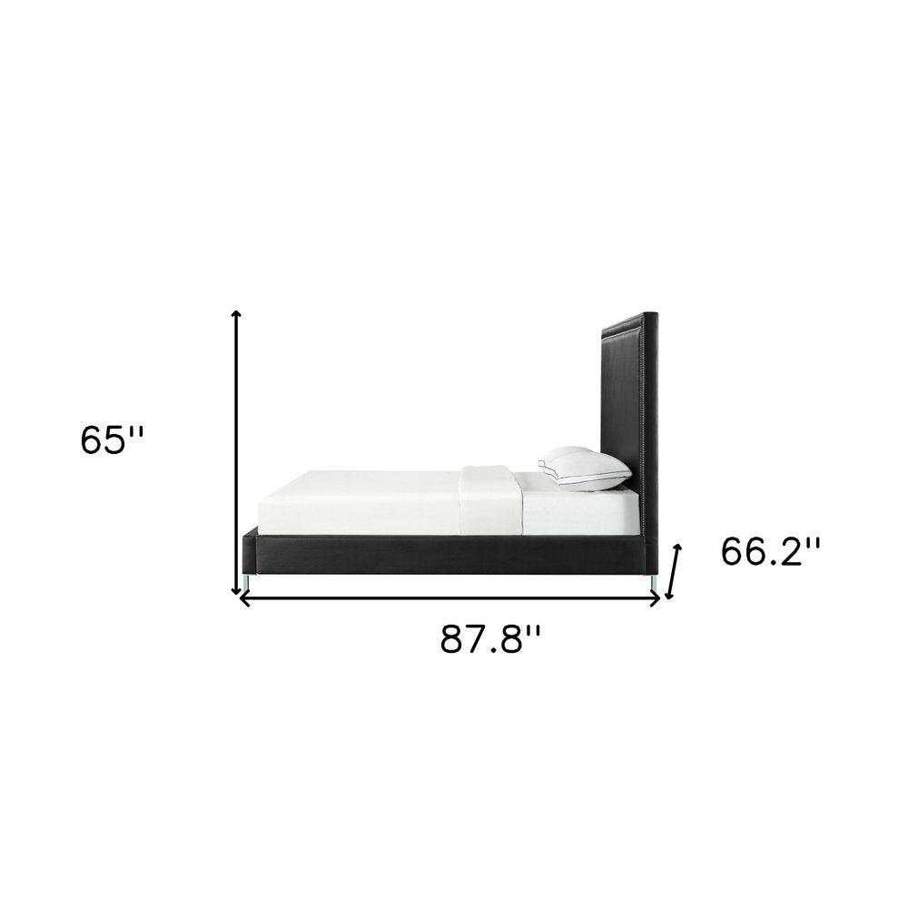 White Solid Wood Twin Upholstered Faux Leather Bed Frame with Nailhead Trim