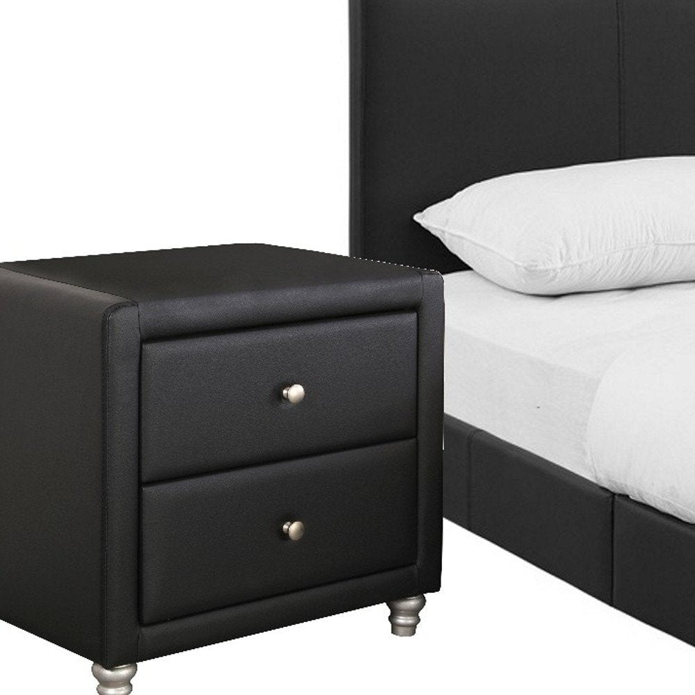 Black Solid and Manufactured Wood Queen Upholstered Faux Leather Bed Frame