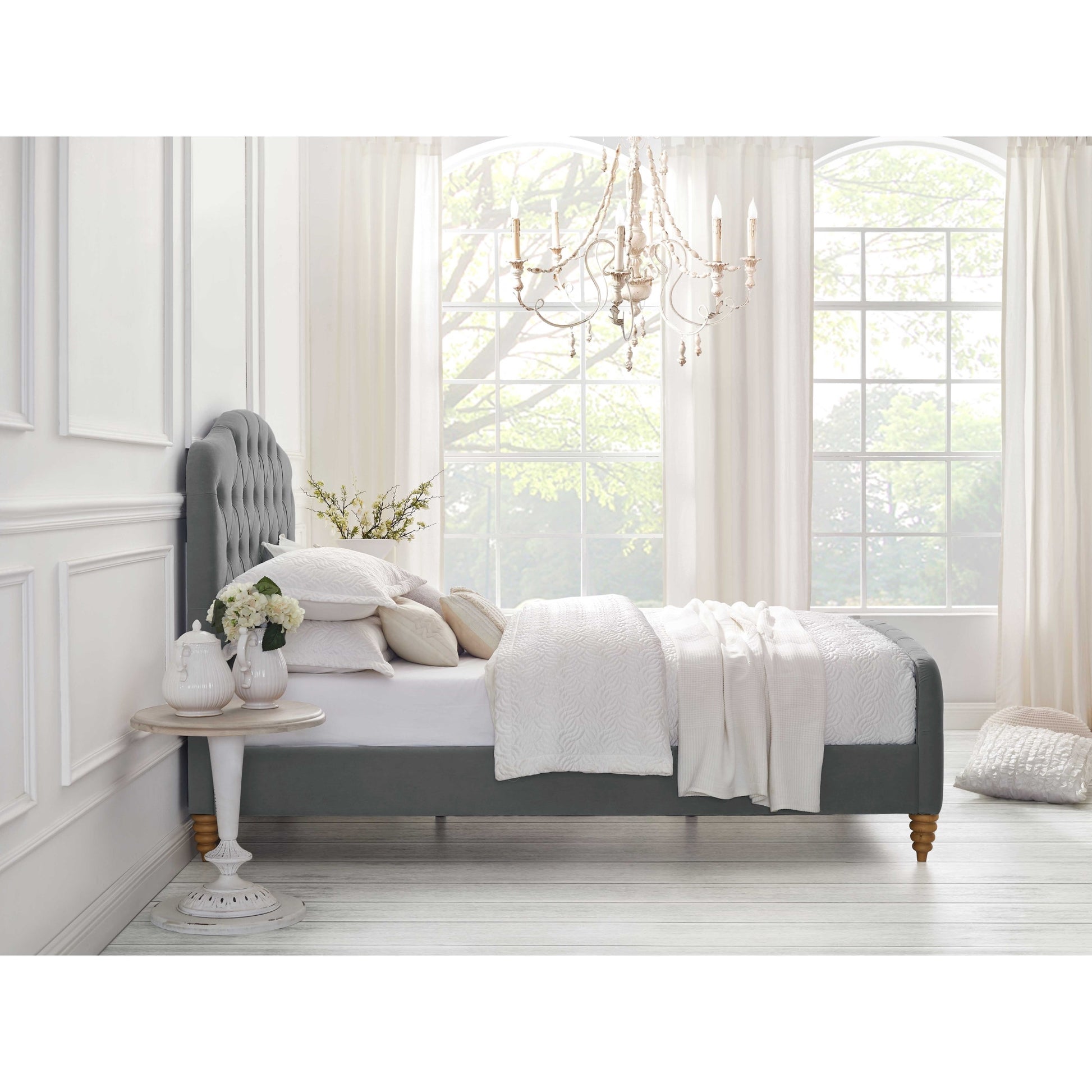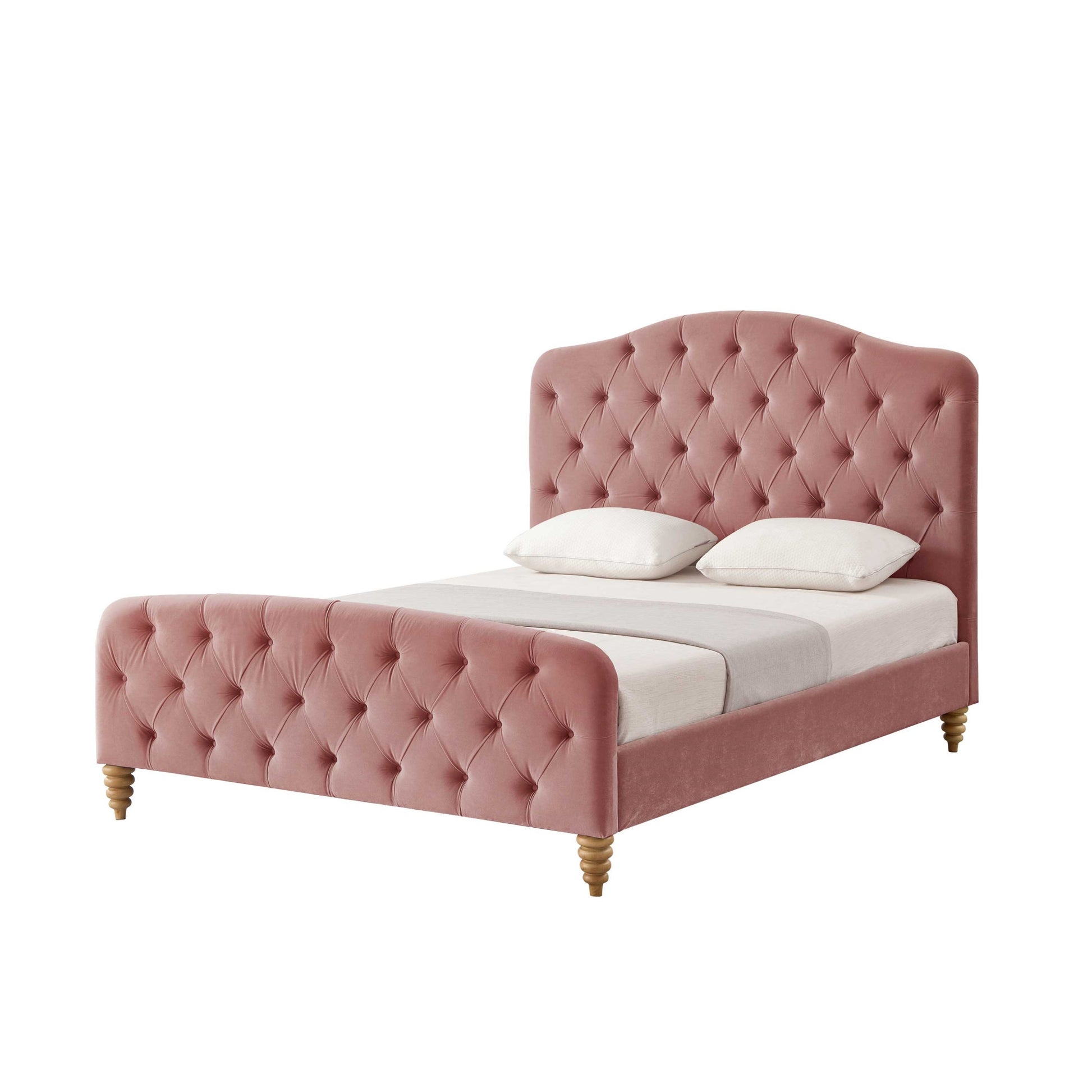 Blush Solid Wood Twin Tufted Upholstered Velvet Bed