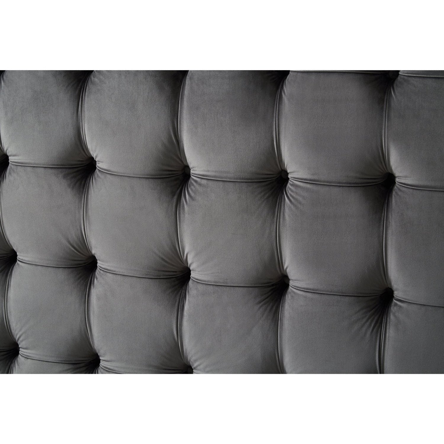 - BUTTON TUFTED - Glam button tufting on headboard enhances distinguished silhouette of this marvelous contemporary design.