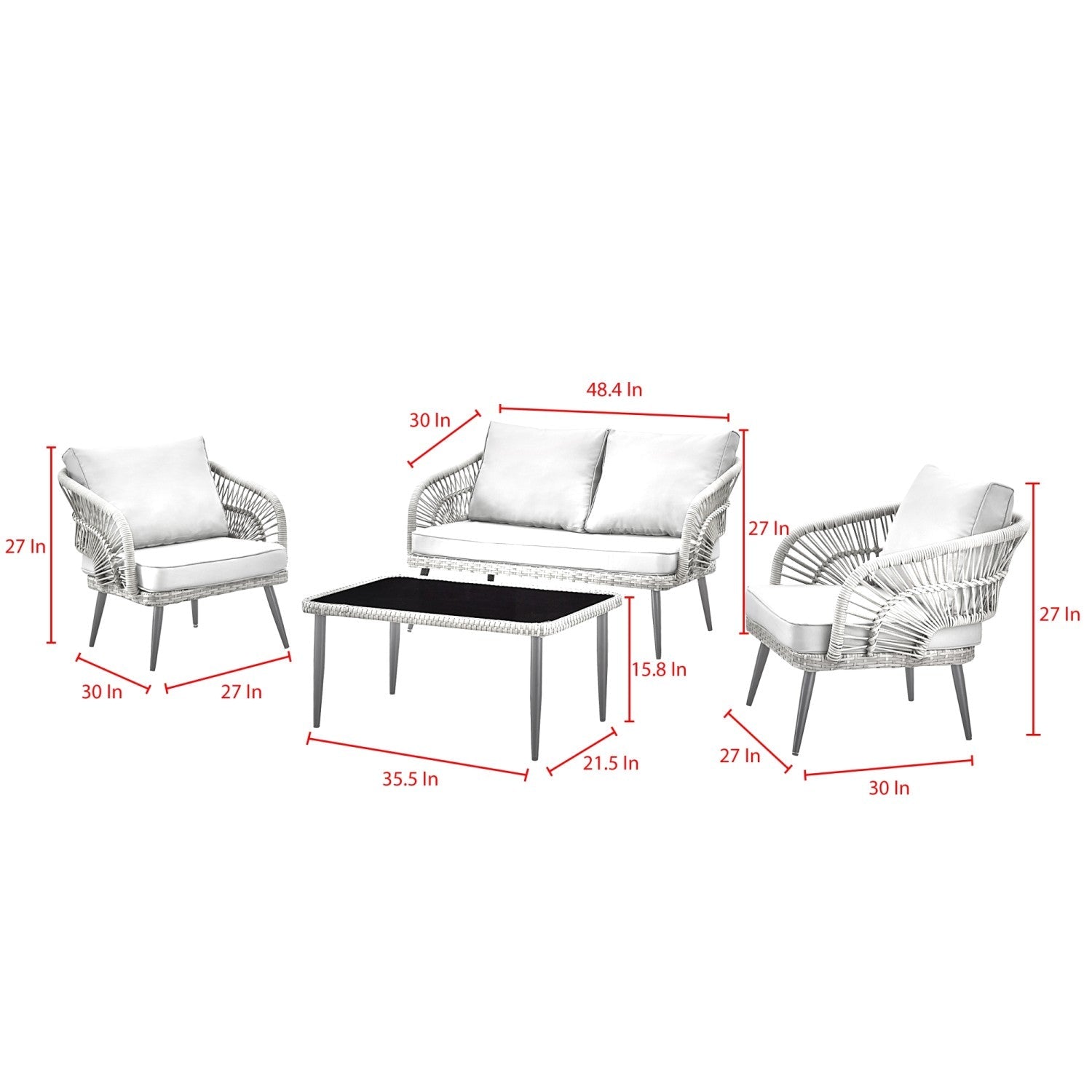 - 4-PIECE SET - Each piece can be used individually in various indoor or outdoor settings. Place a set on your patio or backyard for relaxing bonding moments with friends or family. The set includes: 1 loveseat (2-seater), 2 armchairs, 1 coffee table.