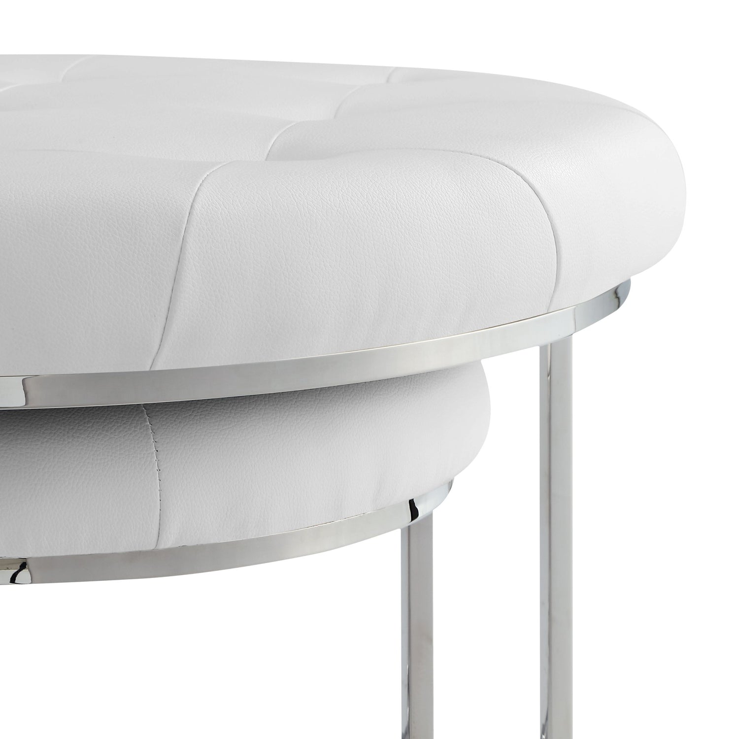 - STURDY CONSTRUCTION – This beautiful set of cocktail ottomans is made of stainless steel sturdy construction that guarantees years of enjoyment of this beautiful room decor. With a whimsical base round silhouette, it speaks to an effortless design concept. Perfect for a contemporary space, these ottomans deliver personality and sophistication