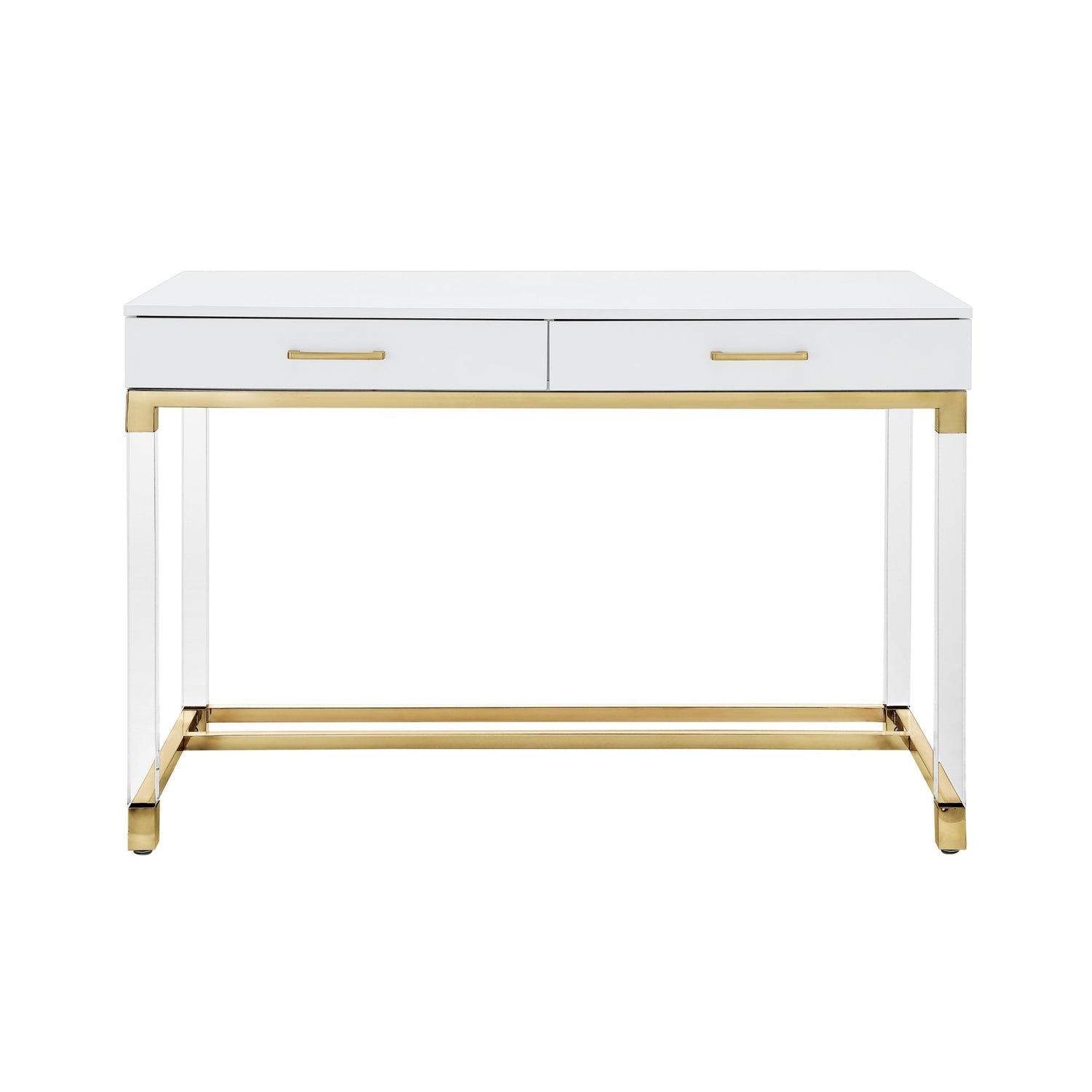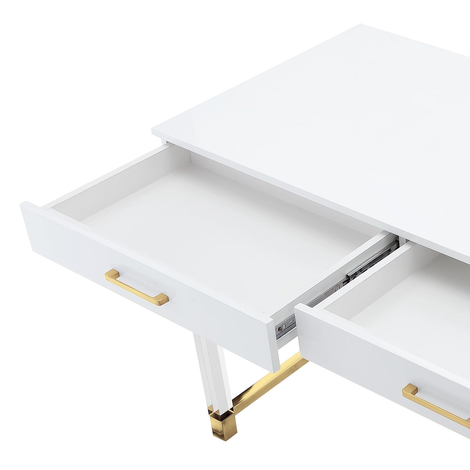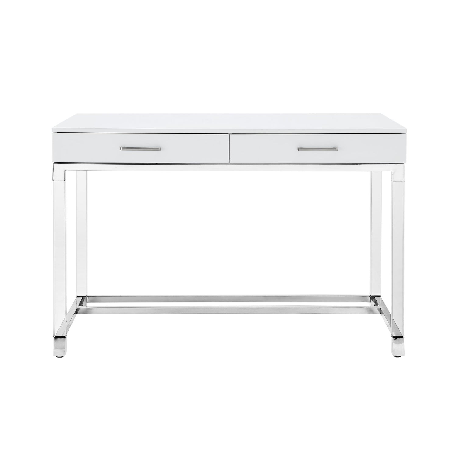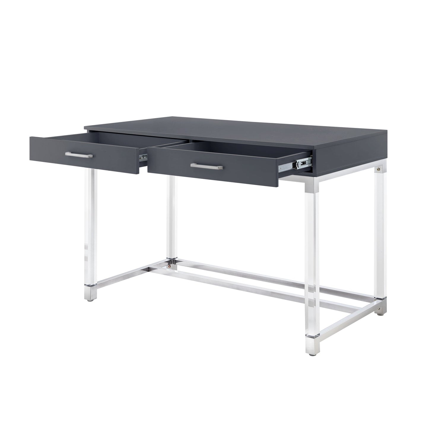 - ELEGANT DESIGN - Our trendy writing desk adds glamorous glow to any room. High gloss elegant finish, clear acrylic legs and polished stainless steel frame on the bottom with matching handles bring luxurious look. Stool is not included