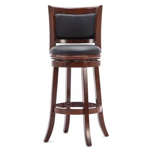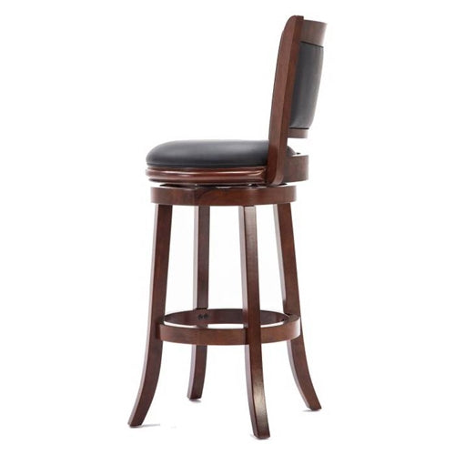 - Cherry 29-inch Solid Wood Bar Stool with Faux Leather Swivel Seat