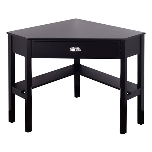 - Corner Black Wood Computer Desk with Drawer