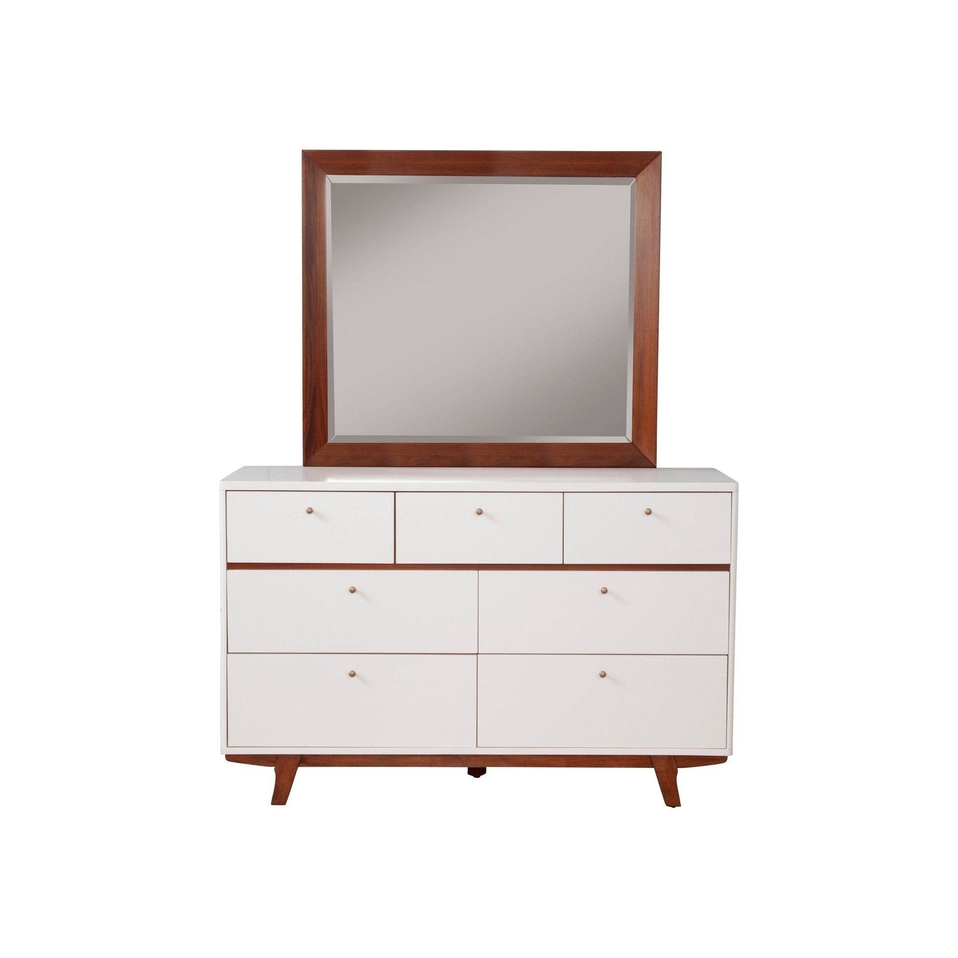 Give your bedroom a stylish and modern, mid-century feel with this clean lined collection. The Dakota mirror is structurally sound and constructed with Mahogany wood solids & veneer in a trendy acorn brown finish. The Dakota collection hints at subtle refinement, without overpowering your current decor. The pieces in the Alpine Furniture Dakota collection fluidly fits in with a variety of aesthetics and color schemes to compliment your bedroom setting. Coordinate with other pieces from the Dakota bedroom collection.
