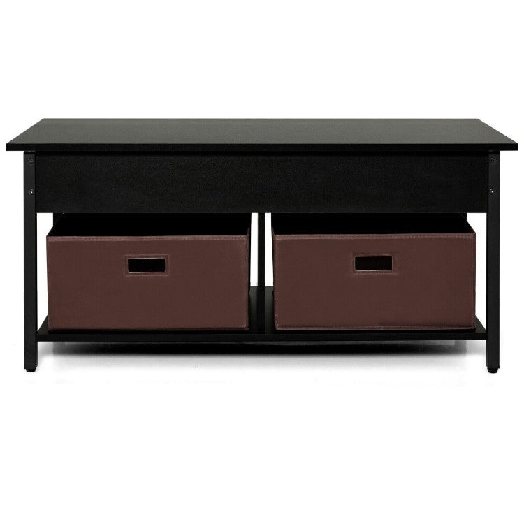 FarmHouse Black Lift-Top Multi Purpose Coffee Table with 2 Storage Drawers Bins