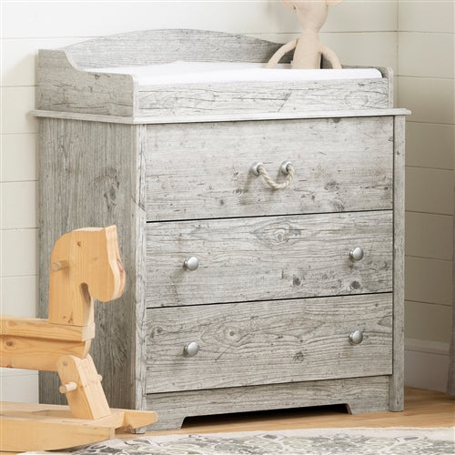 Farmhouse Nautical 3 Drawer Rope Handle Baby Changing Table in Washed Pine