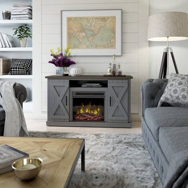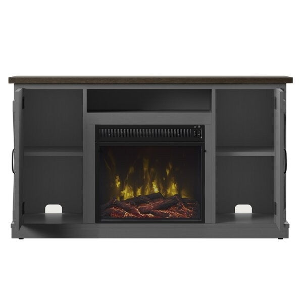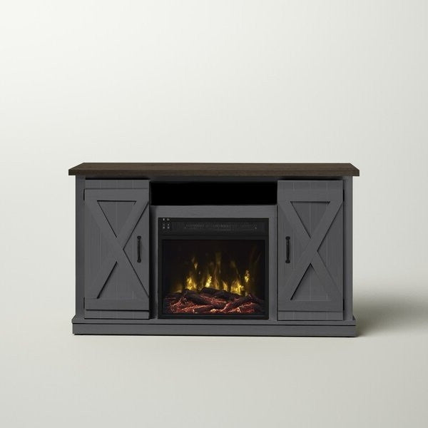 FarmHouse Rustic Grey/Espresso TV Entertainment Electric Fireplace