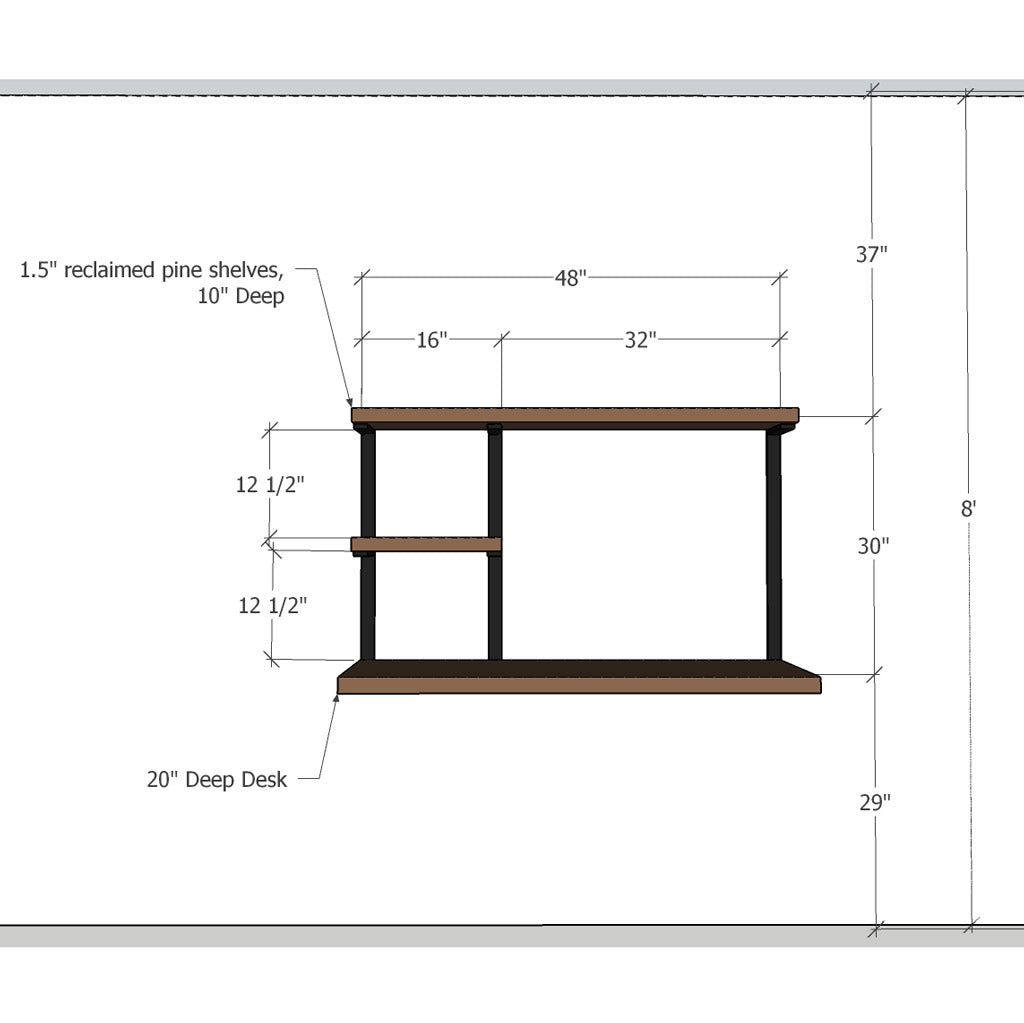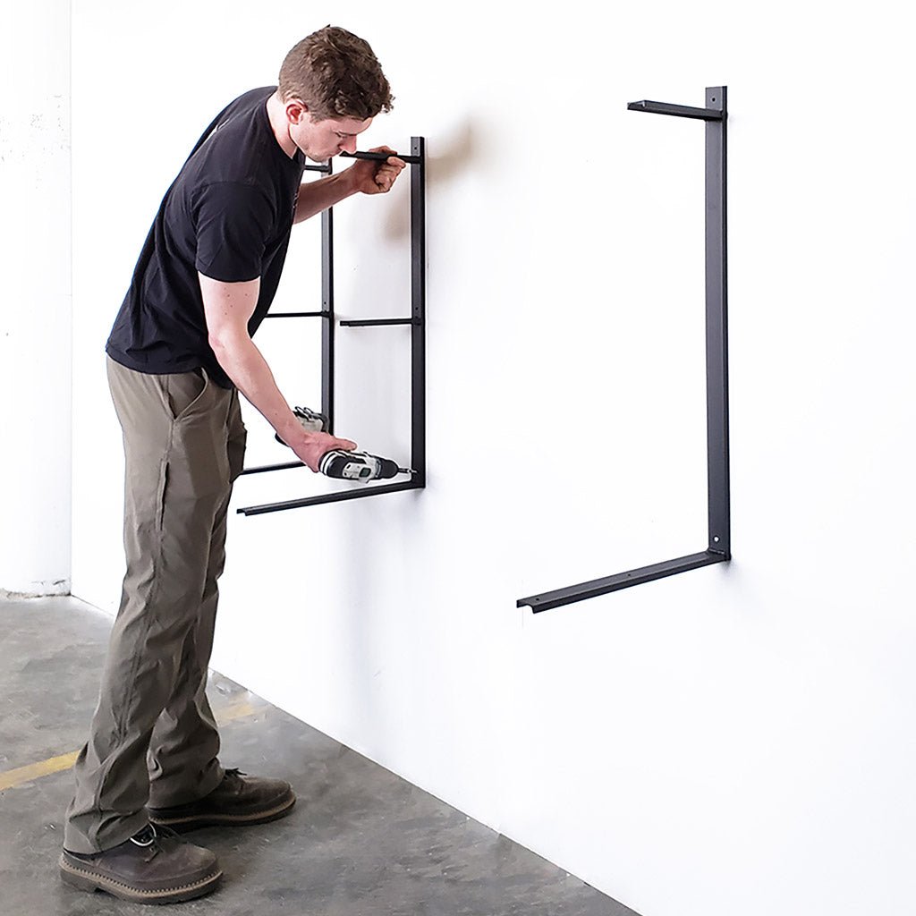 Completely designed and built in the USA with materials guaranteed to last a lifetime. We custom fabricate the brackets from 1.5" wide American steel channel. Each bracket mounts to the wall in 3 locations, hidden behind the shelves. They are extremely sturdy, easy to install and have a load capacity of over 500 lbs.