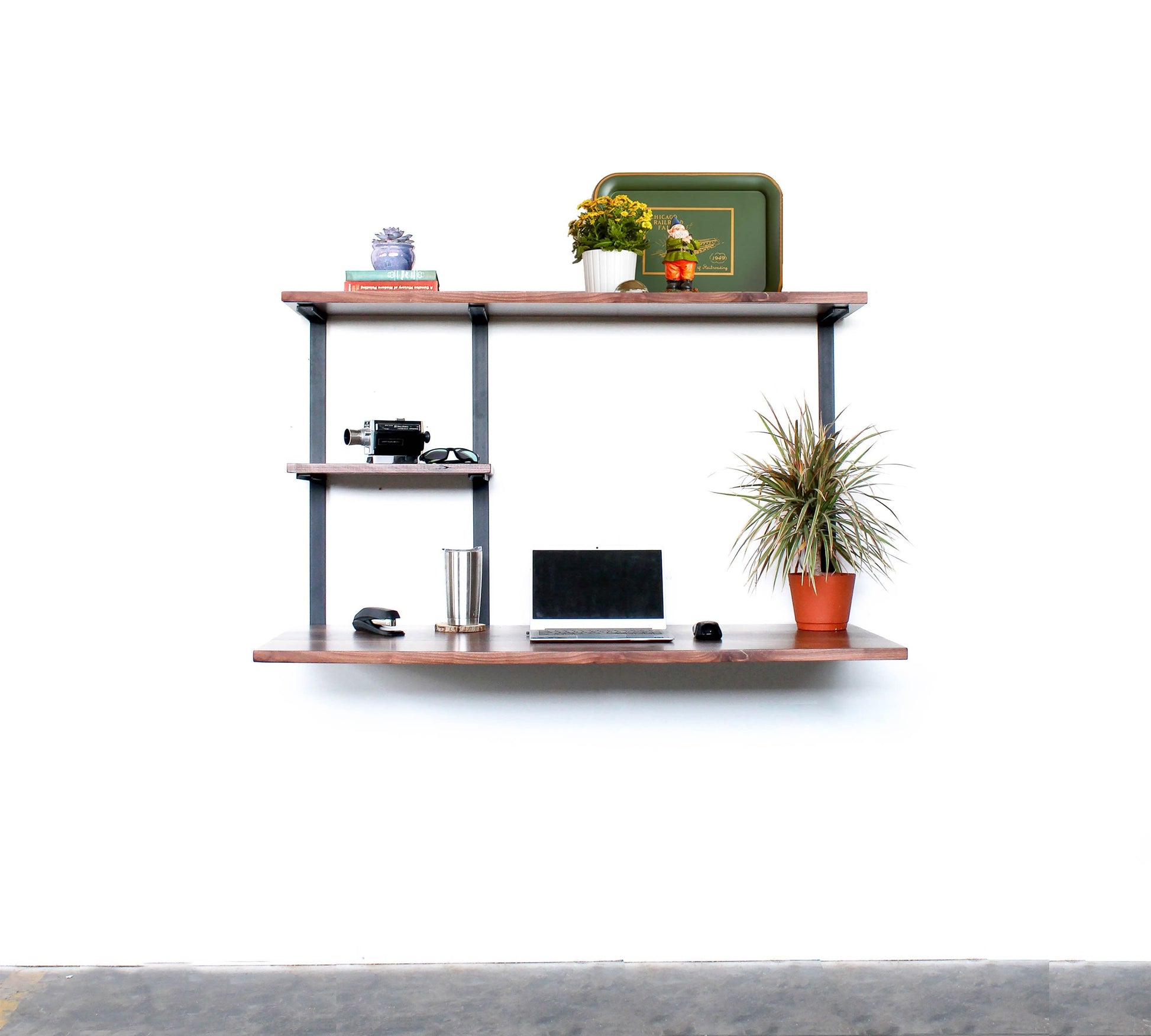 Minimal Wall Mounted Computer Desk handmade with wood & steel