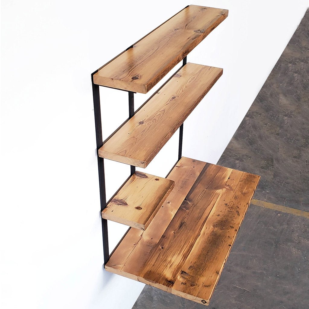 Completely designed and built in the USA with materials guaranteed to last a lifetime. We custom fabricate the brackets from 1.5" wide American steel channel. Each bracket mounts to the wall in 3 locations, hidden behind the shelves. They are extremely sturdy, easy to install and have a load capacity of over 500 lbs.