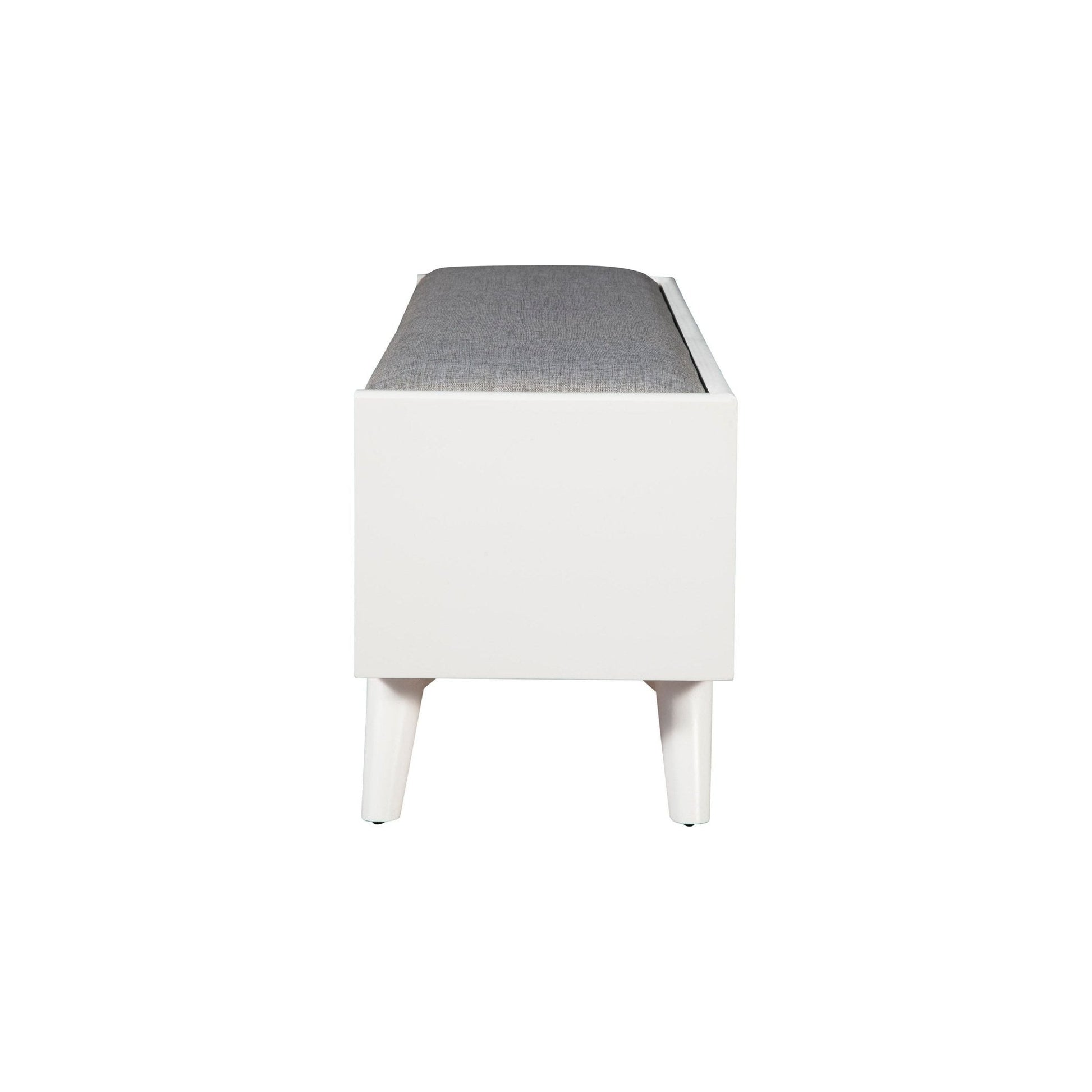 The Flynn collection features the classic lines of Mid-Century Modern furniture that never goes out of style. Its sturdy frames are built to last, constructed of sustainably sourced solid Mahogany to ensure a lifetime of use. The bench provide a roomy seating/storage solution and make it easy to create a cohesive decorating style or mix and match for a more personalized look. Crafted with English Dovetail Drawer Construction and Ball Bearing Metal Drawer Glides. Drawer is felt lined. Coordinates with other pieces in multiple finish options as part of the Alpine Furniture Flynn collection sold separately.