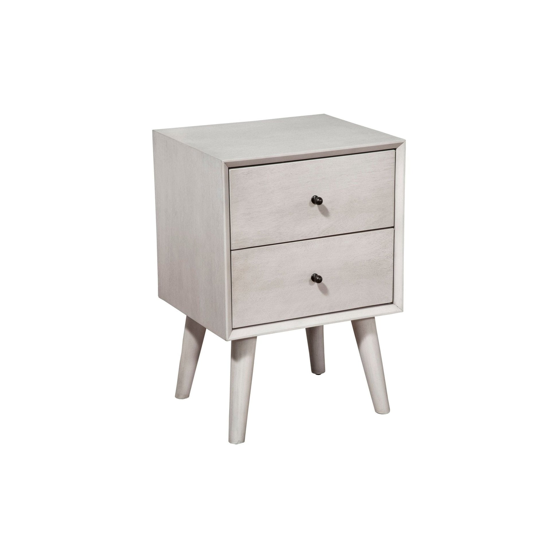 The Flynn collection features the classic lines of Mid-Century Modern furniture that never goes out of style. Its sturdy frames are built to last, constructed of sustainably sourced solid Mahogany to ensure a lifetime of use. The Flynn nightstand has two drawers to accommodate most bedside necessities. The nightstand comes fully assembled, and is constructed with ball bearing metal drawer glides and French & English dovetail drawer construction. The Flynn bedroom makes it easy to create a cohesive decorating style or mix and match for a more personalized look. Coordinates with other pieces in multiple finish options as part of the Alpine Furniture Flynn collection sold separately.