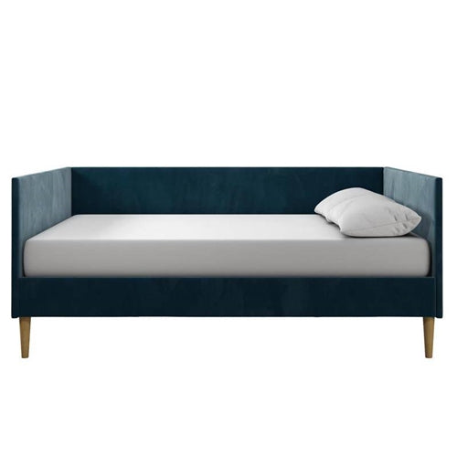 - Ships in one easy to handle box. Quick assembly. No box spring is required saving you even more money. Accommodates one standard twin-size mattress (not included).