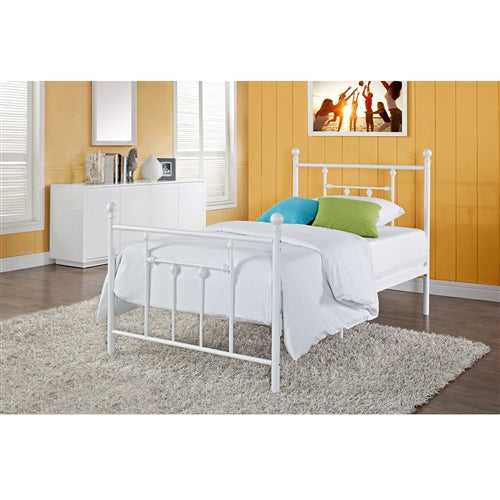 Full size White Metal Platform Bed with Headboard and Footboard
