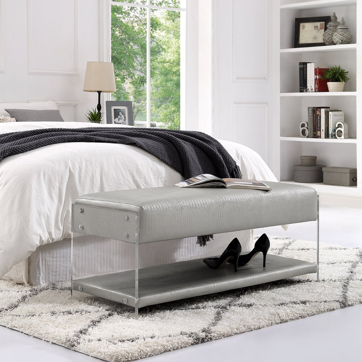 - GLAM - Bonded croc embossed PU leather bench with modern clear acrylic sides.