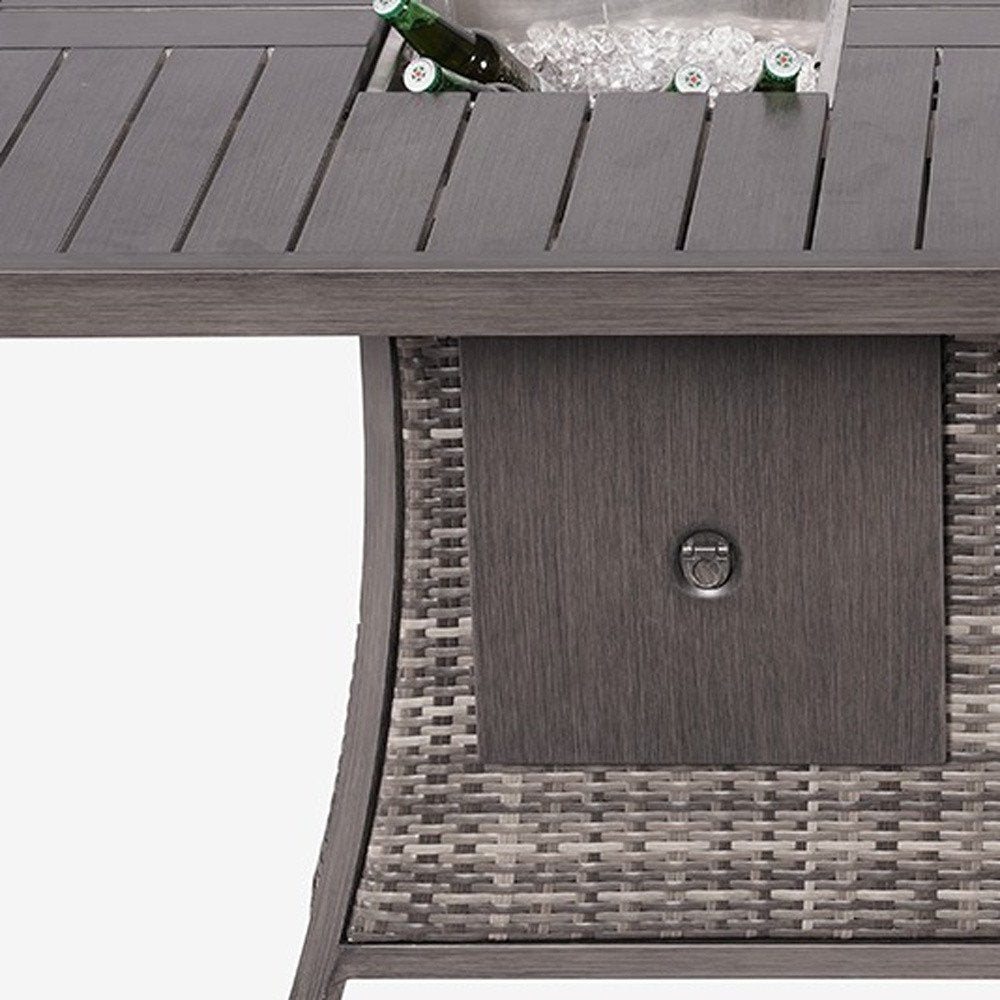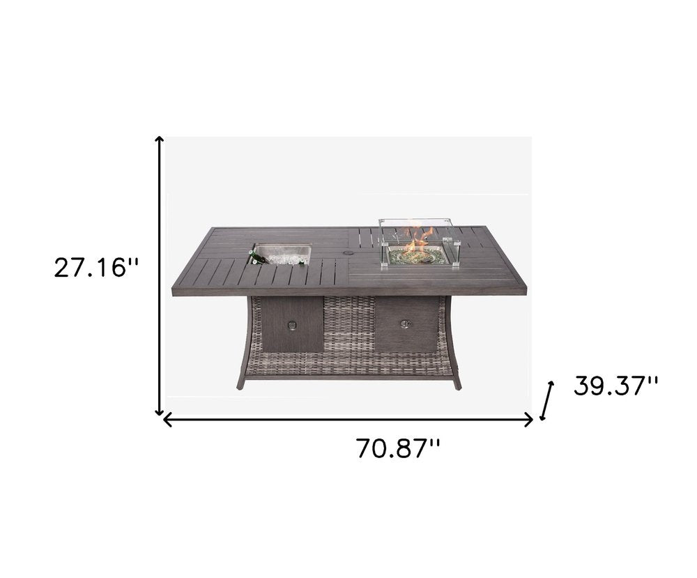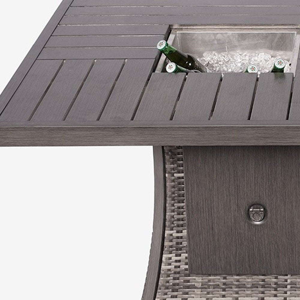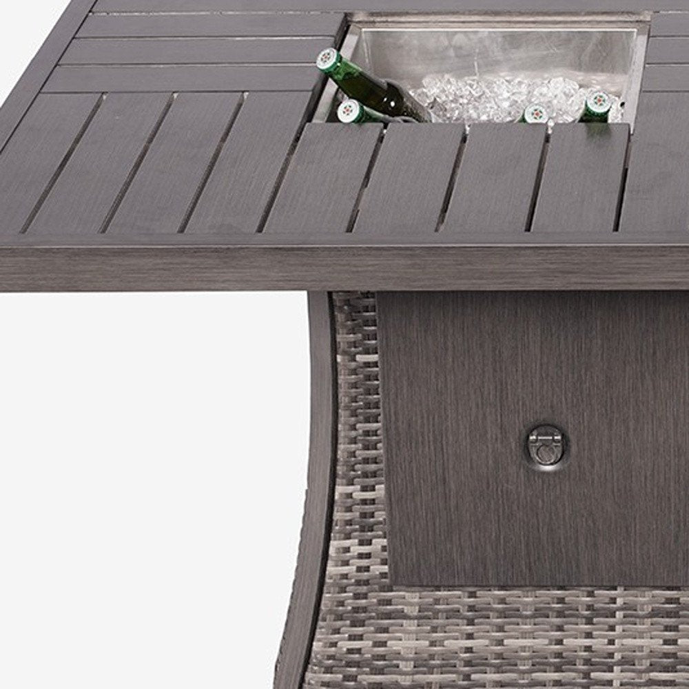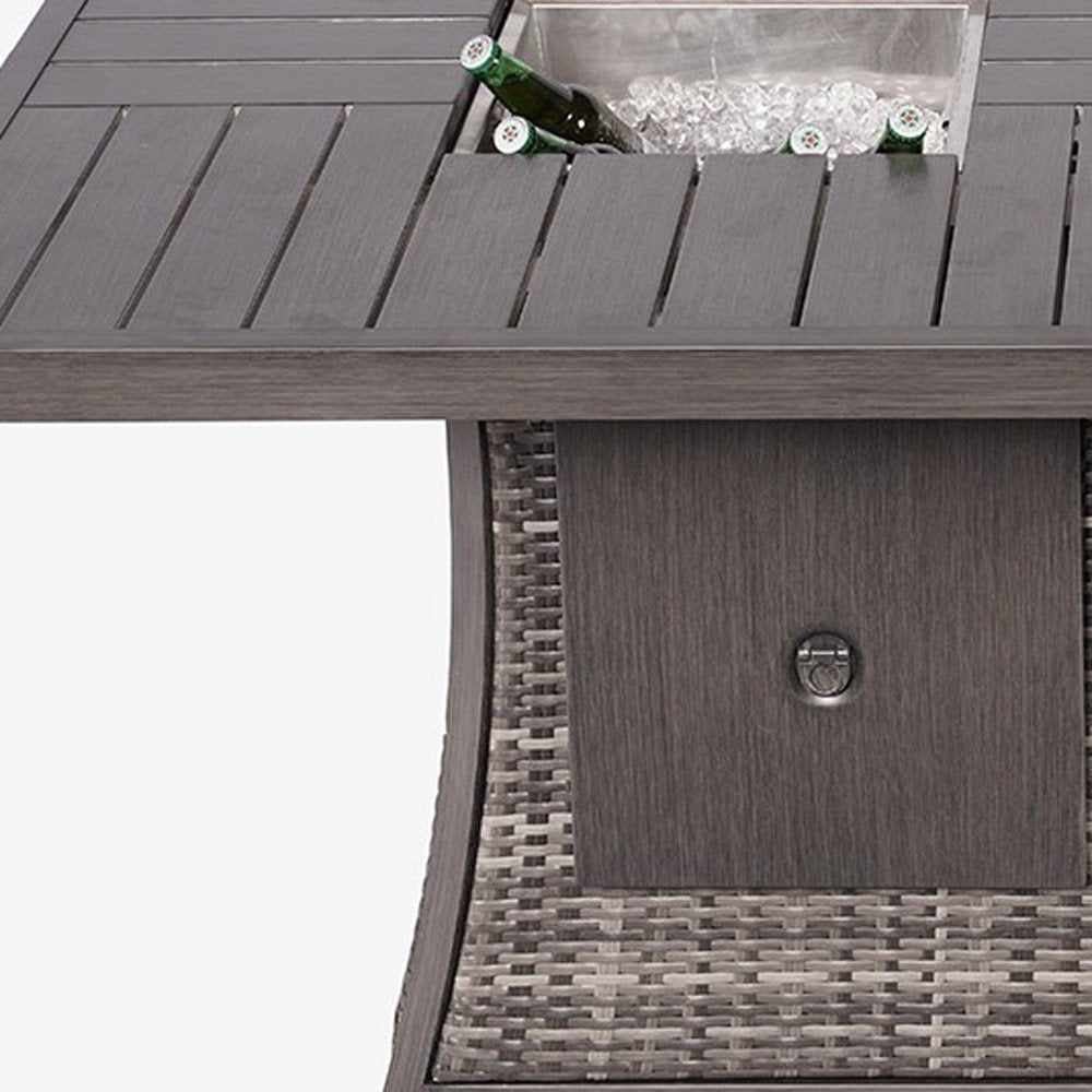Gray Wicker Outdoor Gas Fire Pit Table with Ice Bucket