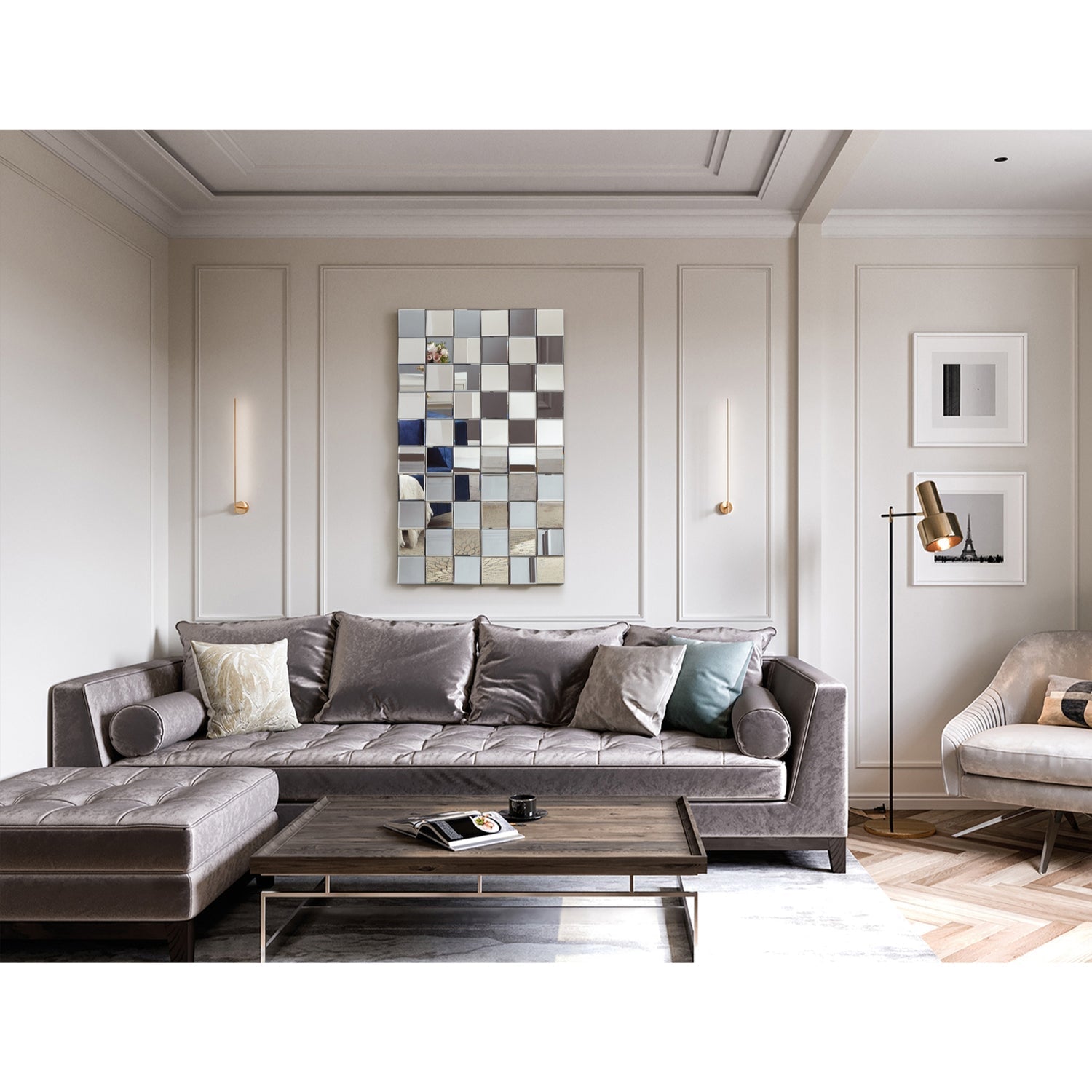 - GLAM DESIGN – This gorgeous modern rectangular three-dimensional wall mirror with reflective square tiles in beveled finish creates a complete and unique accessory that brings elegance to any room and brightens up wall space.