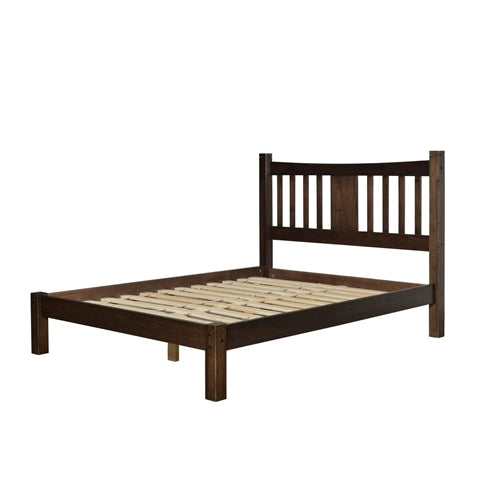 King Size Farmhouse Style Solid Wood Platform Bed with Headboard in Espresso