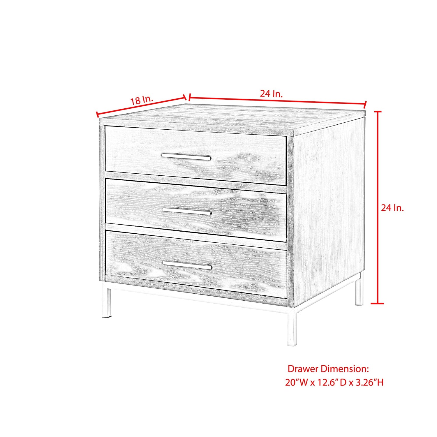 - MEASUREMENTS – 24"W x 18"D x 24"H. Drawer: 20”W x 12.6”D x 3.26”H