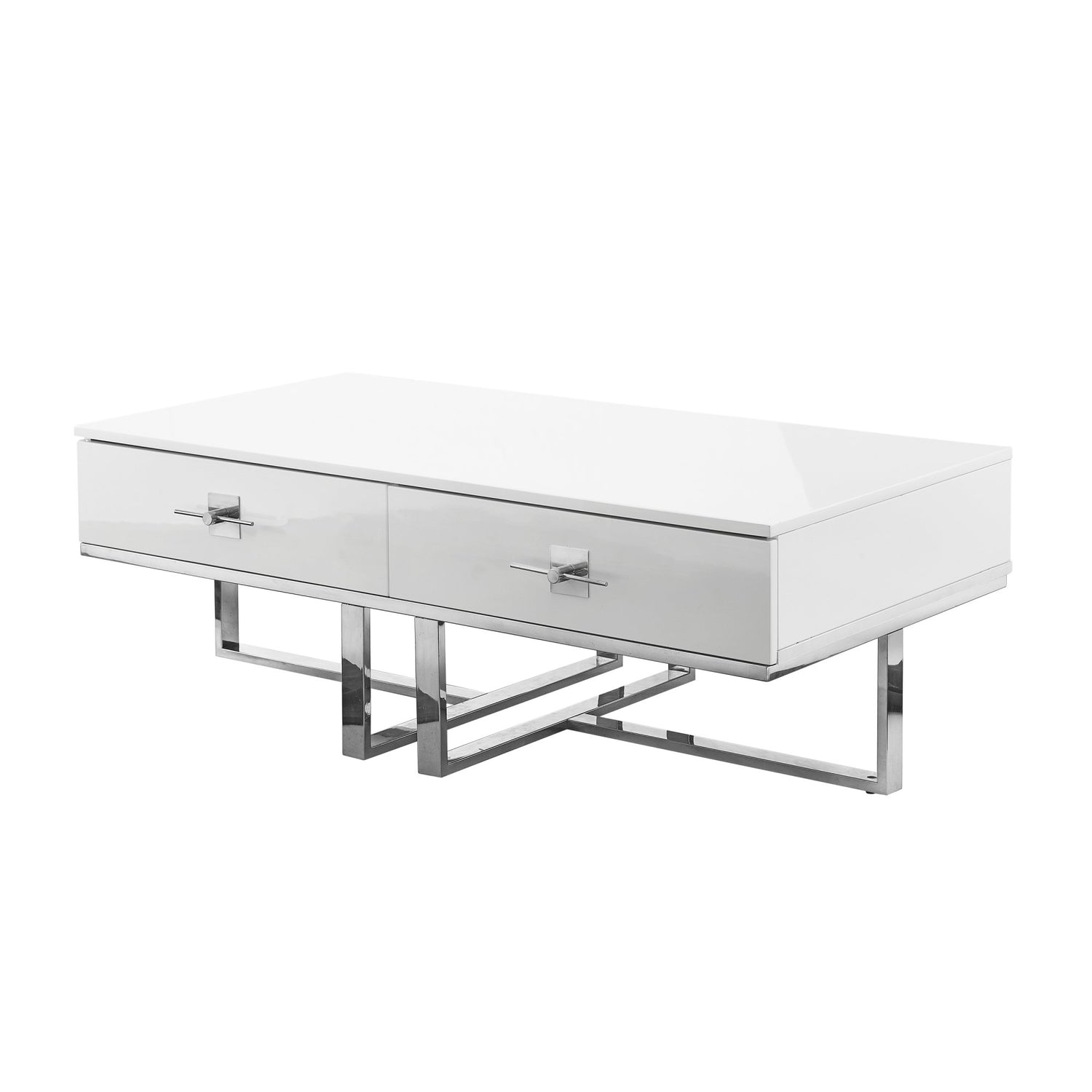 - ELEGANT DESIGN - This unique luxe coffee table with polished stainless steel geometric base and high gloss top infuses an exquisite accent to your main furniture to create that modern cozy atmosphere in your home and enhances the surrounding décor.