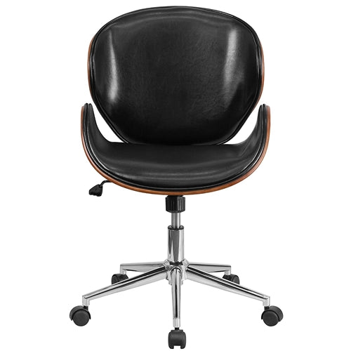 Mid-Back Walnut / Black Faux Leather Office Chair with Curved Bentwood Seat