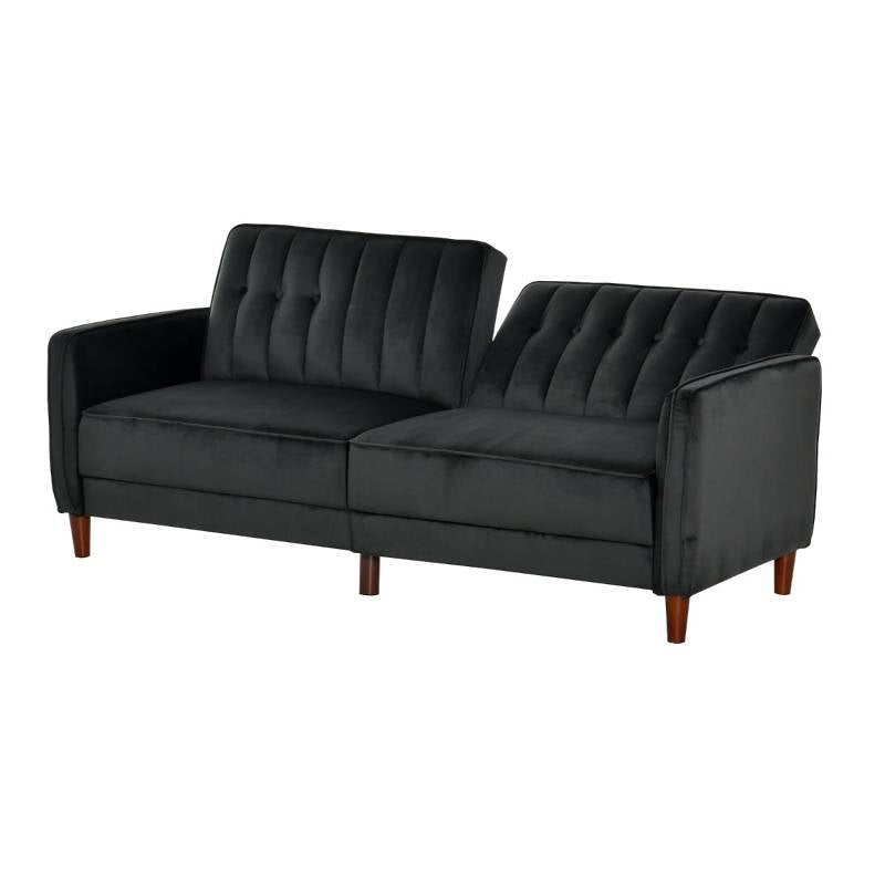 - Mid-Century Modern Futon Sleeper Sofa Bed in Black Velvet Upholstery