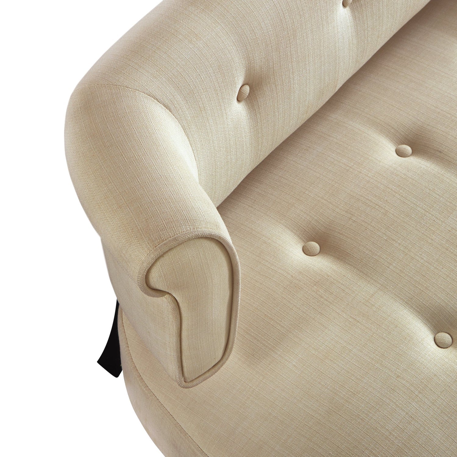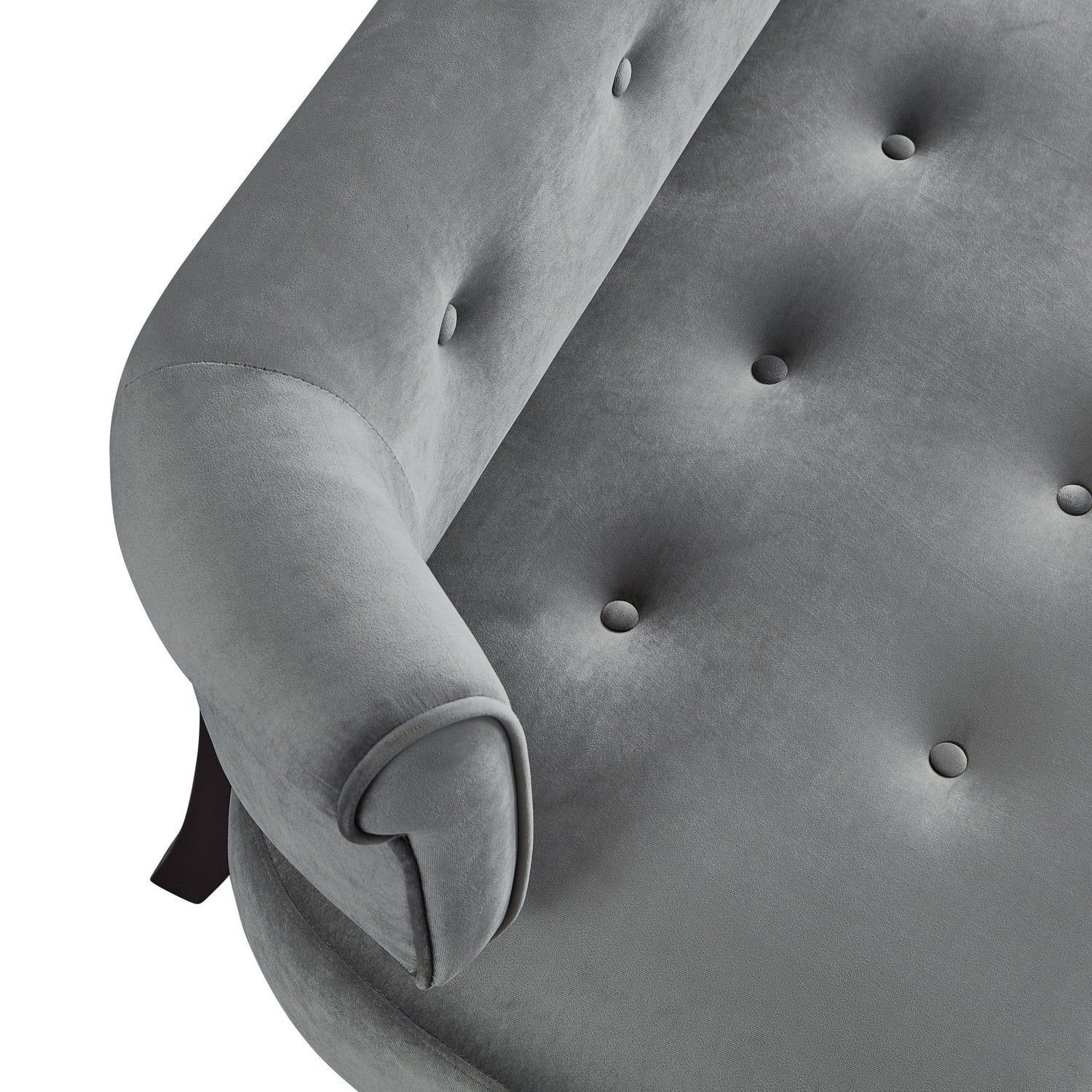 - ATTRIBUTES: Upholstered, Button Tufted, Curved Back