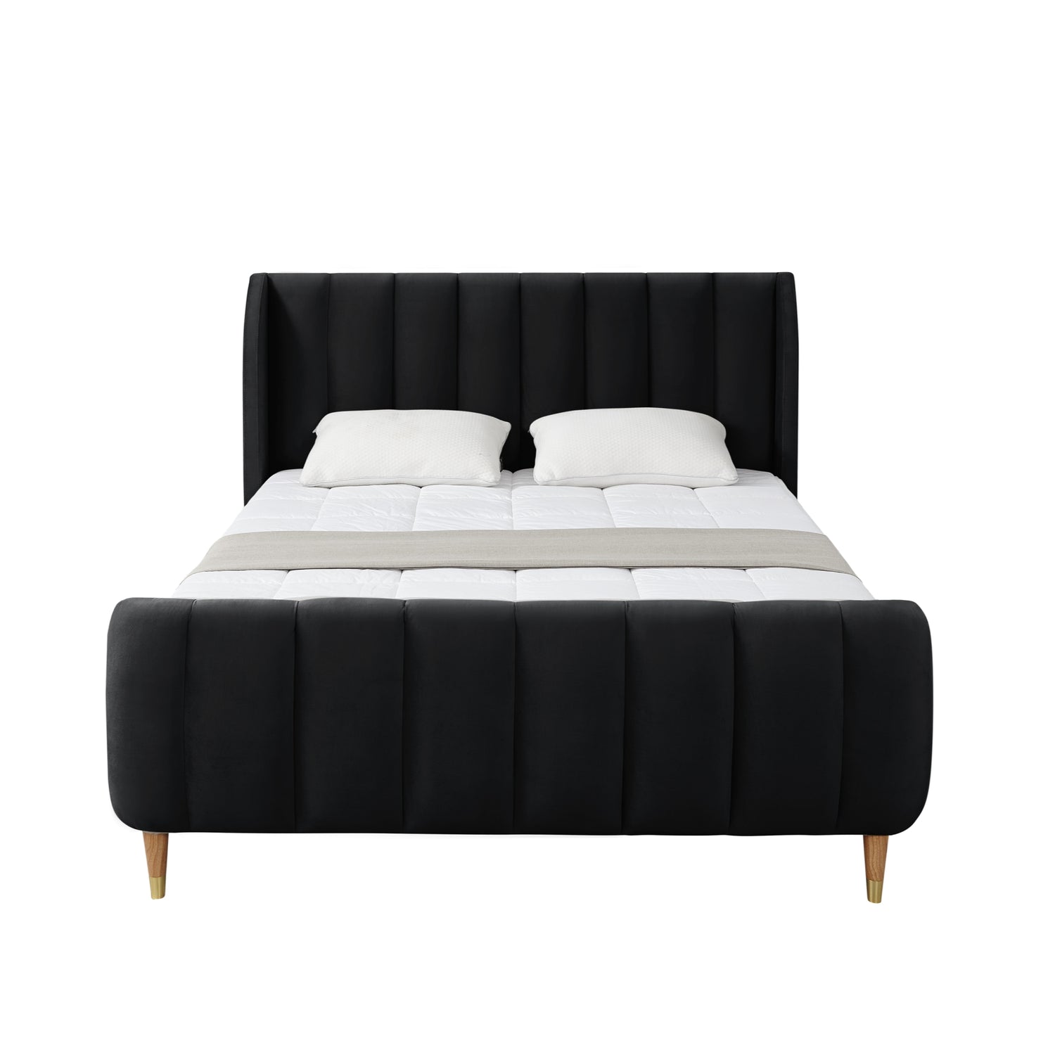 - PREMIUM QUALITY MATERIALS - Carefully designed for durability and style, a mixed hardwood frame construction adds strength, and premium velvet fabric creates luxurious comfort. More so, enjoy the generously padded headboard and footboard.