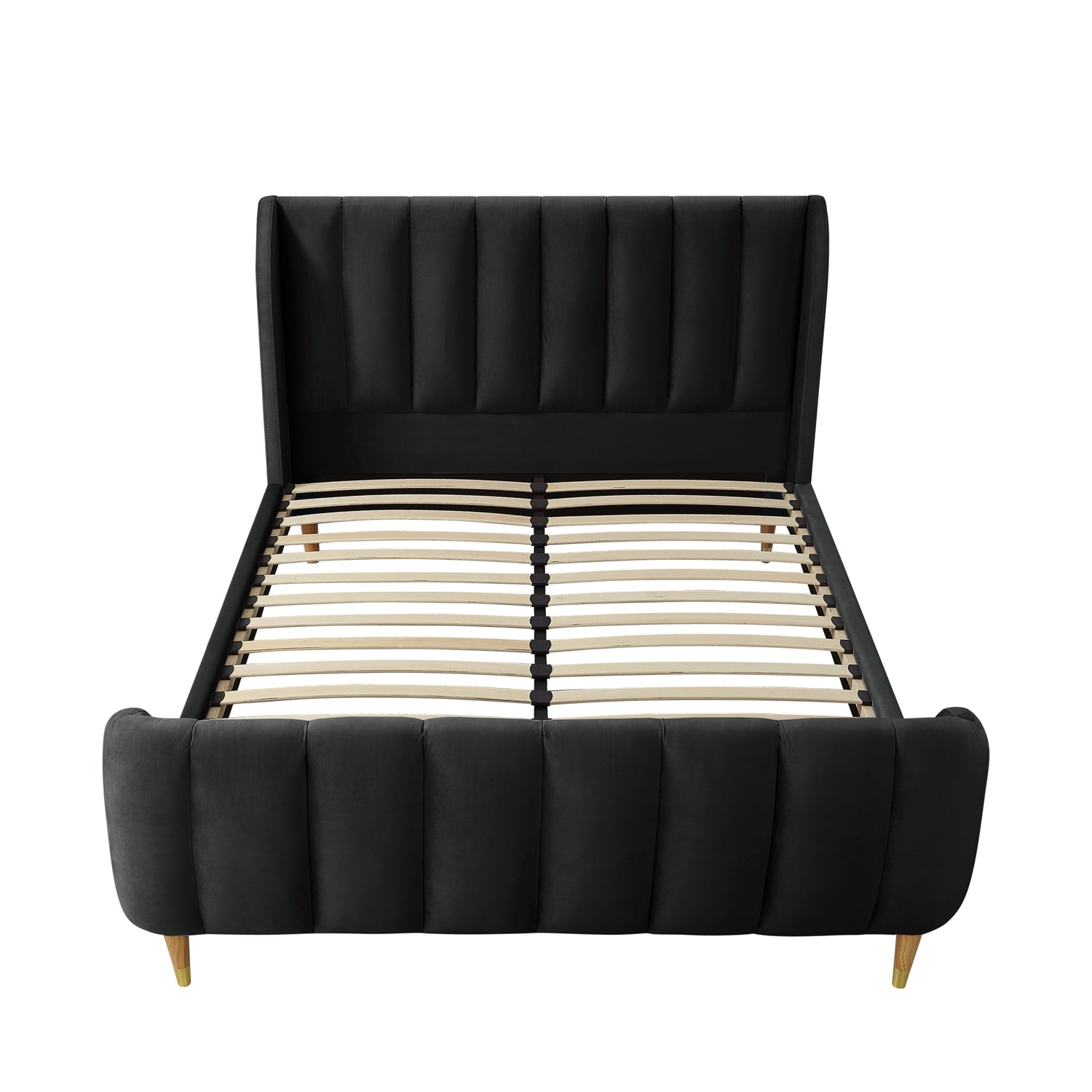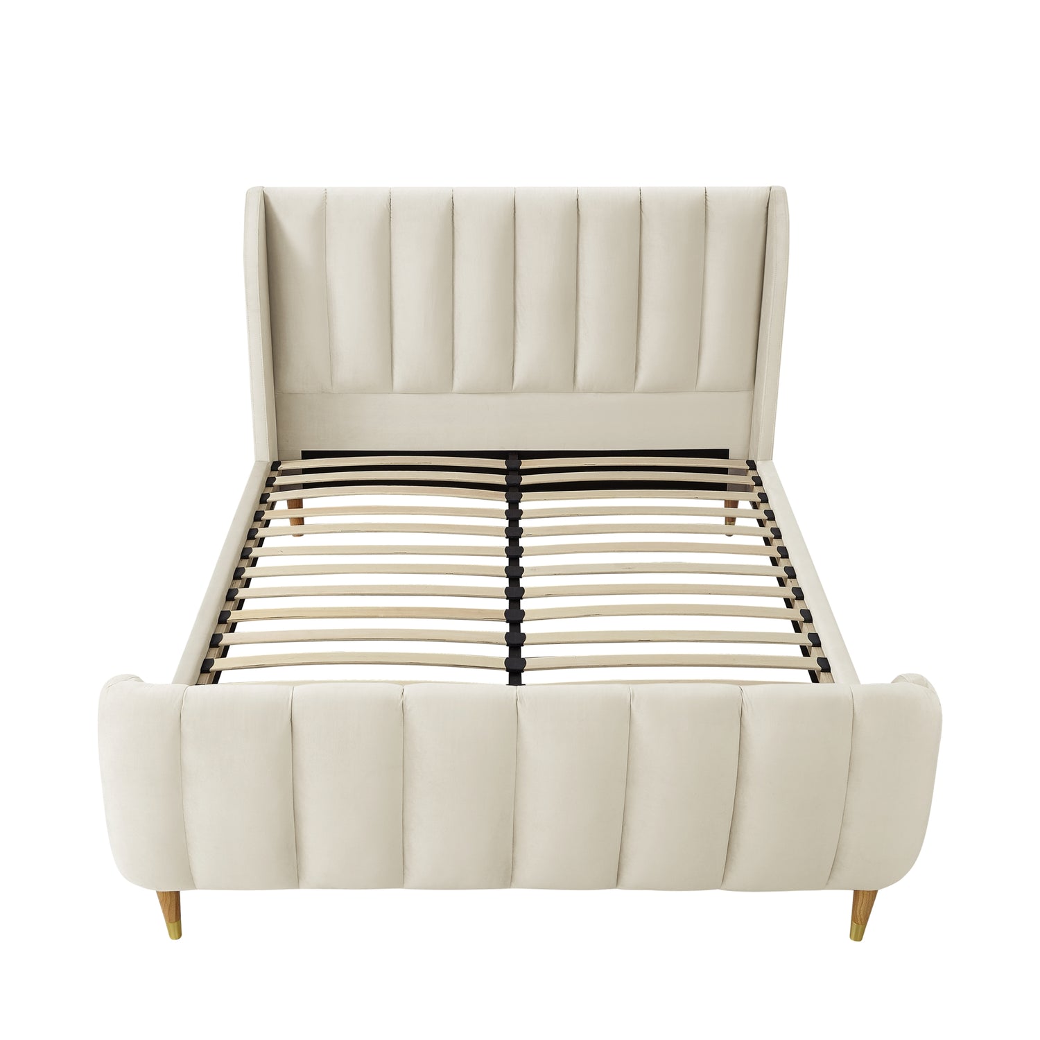 - ATTRIBUTES: Upholstered, Channel Tufted, Wingback, Footboard, Slats Included