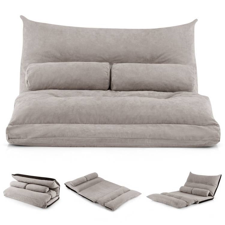 - Modern Adjustable Floor Lounger Chair Sofa Bed with 2 Pillows in Grey