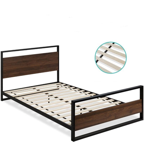 Modern FarmHome Queen Low Profile Metal Wood Platform Bed