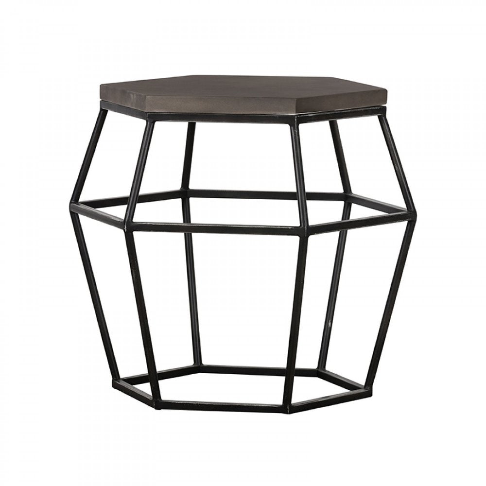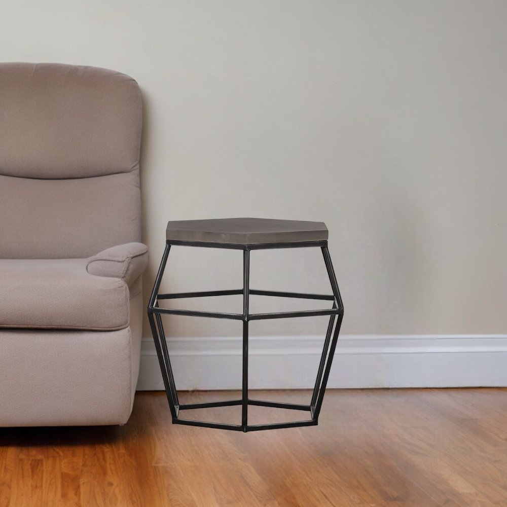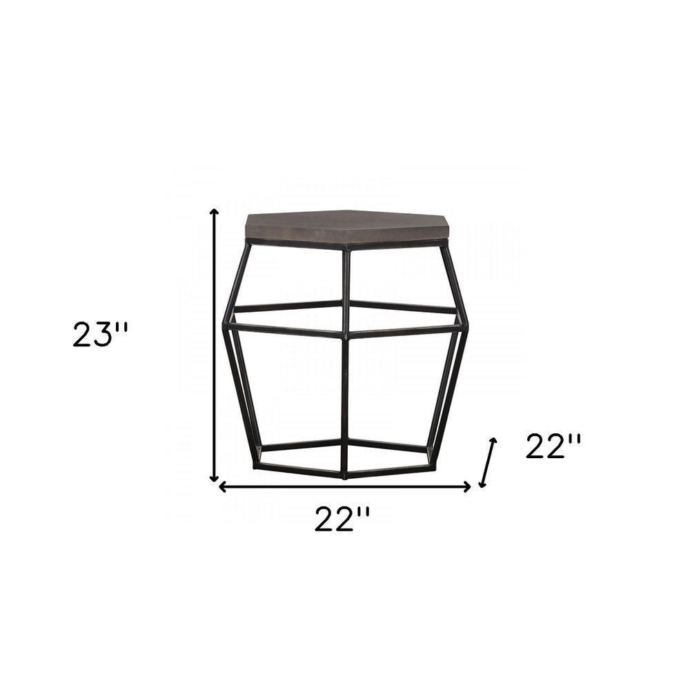 Modern Gray Concrete and Black Metal Hexagonal End Table