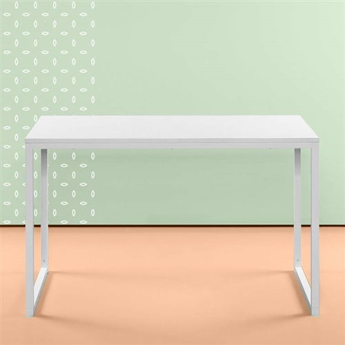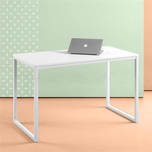 Modern Home Office Desk with White Metal Frame and Wood Top
