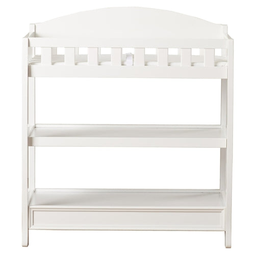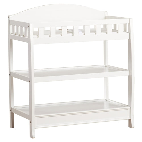 Modern White Wooden Baby Changing Table with Safety Rail Pad and Strap
