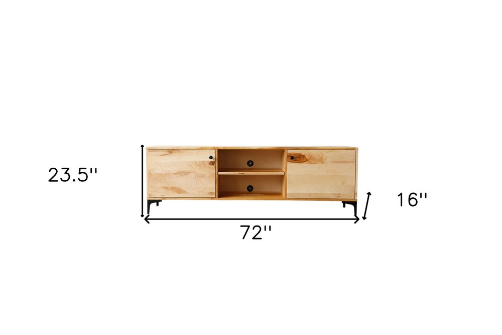 72" Brown Solid Wood Cabinet Enclosed Storage TV Stand