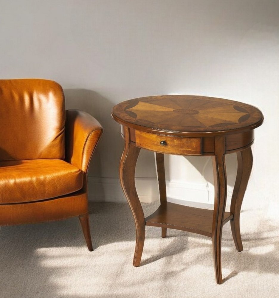 25" Brown Wood Oval Coffee Table With Drawer And Shelf