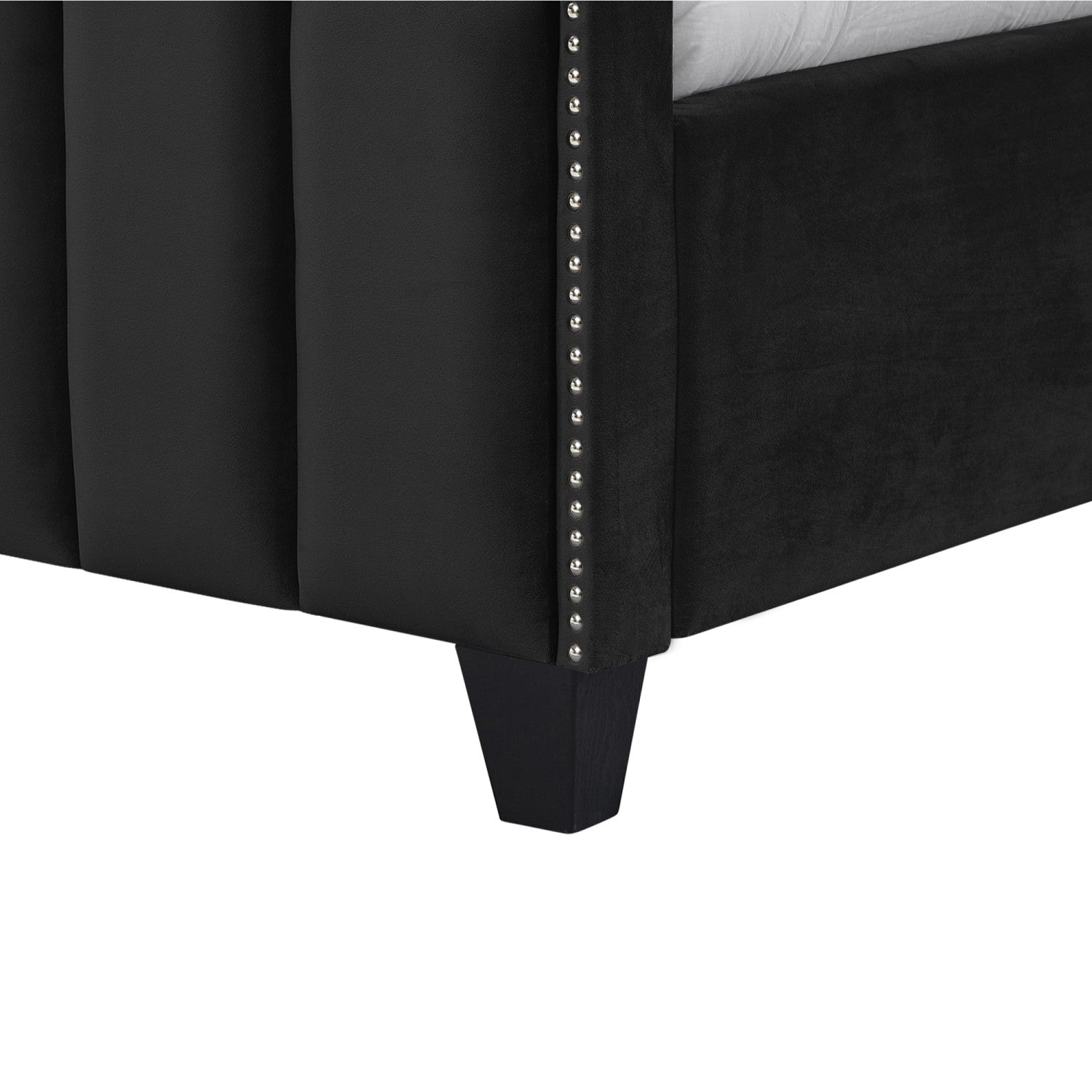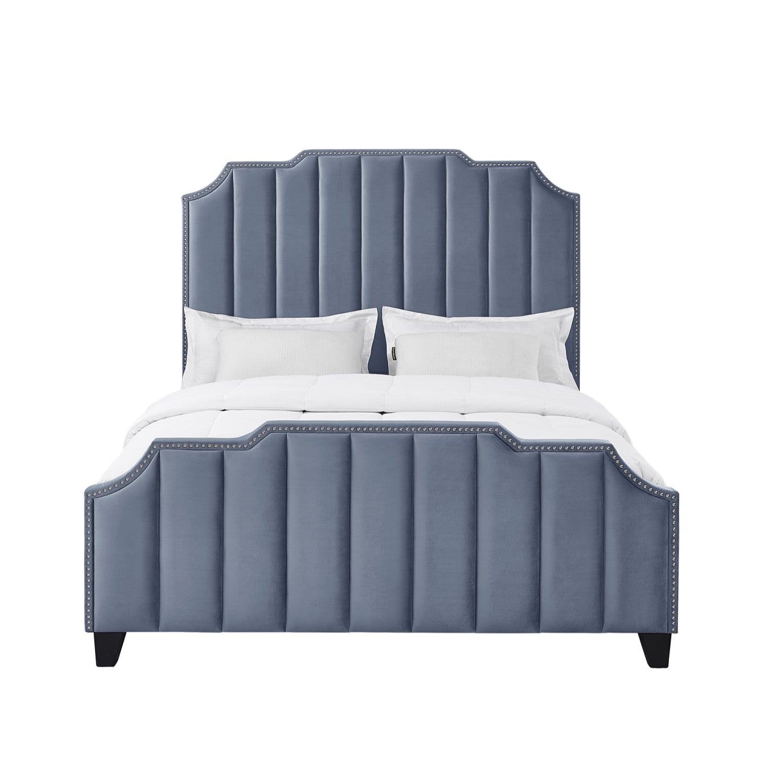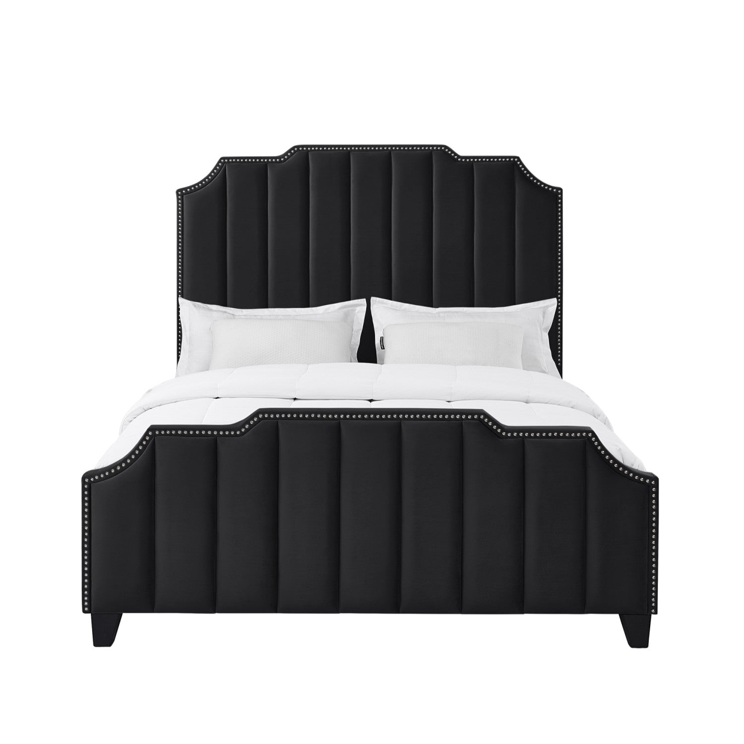 - ATTRIBUTES: Upholstered, Channel Tufted, Nailhead Trim, Footboard, Slats Included