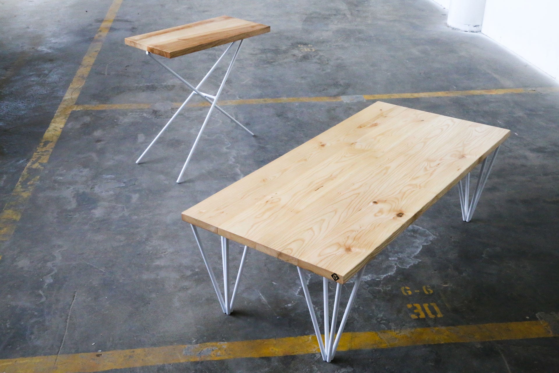 Rustic Coffee Table handmade in the USA from solid reclaimed pine, ash, or black walnut and American steel tube legs.