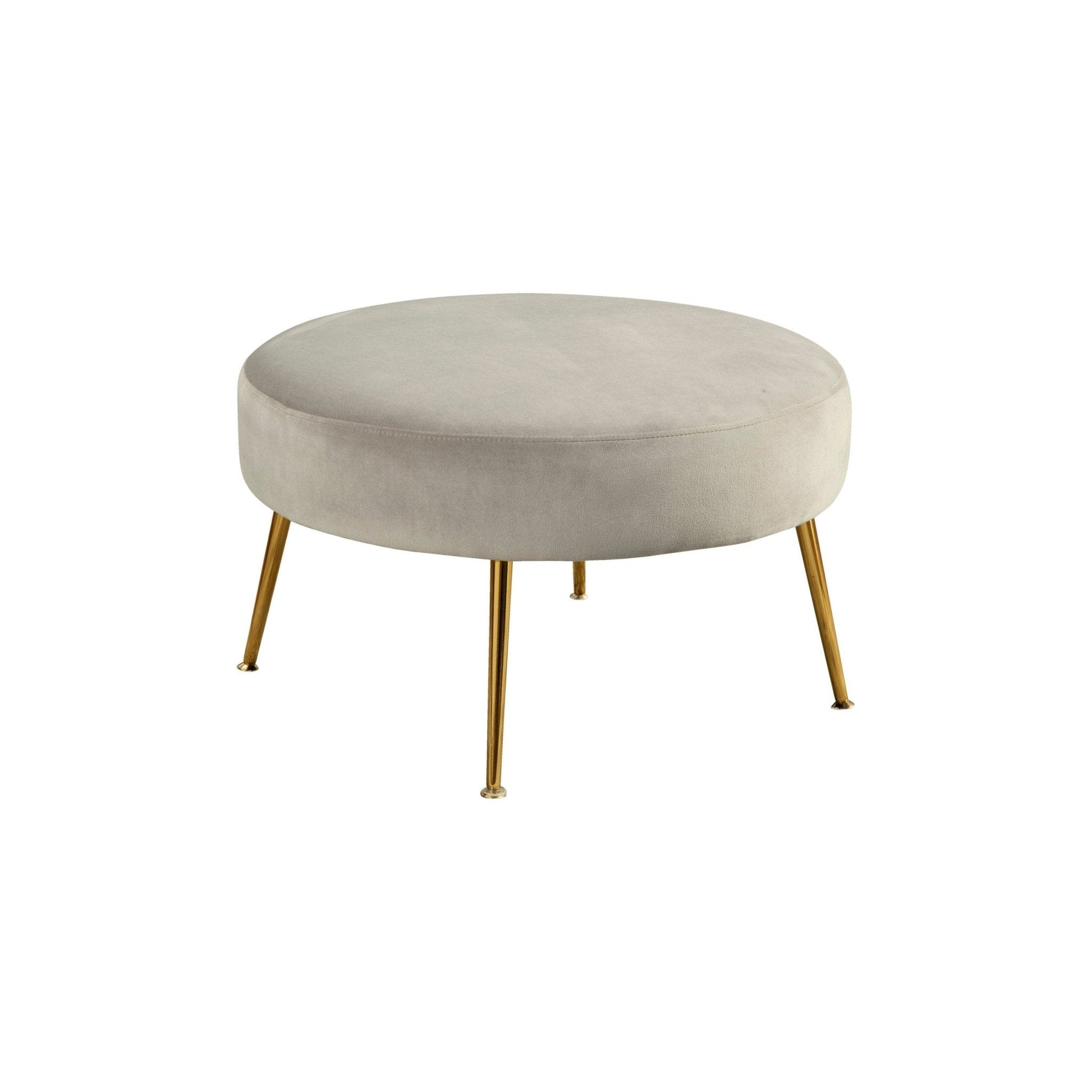 Slender yet sturdy gold legs provide a pop of on-trend glamour with the Rebecca matching footrest that just adds that extra layer of comfy to your home. Curl up with a good book in the coordinating Rebecca leisure chair, sold separately, that makes for a chic accent to your modern decor. Made with smooth, velvety fabric of a soft gray hue. Showcase this eye-catching ensemble in your living room, bedroom, or even in an entryway to provide your guest the most comfortable seating.