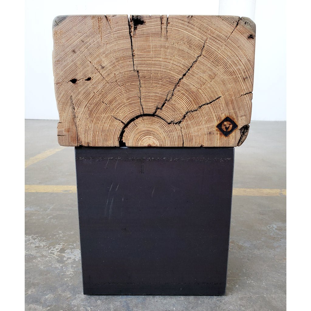 We hand fabricate the bench legs from 10" wide American made steel channel. We then finish with an extremely durable powder coating. The beam is then mounted on the legs for an incredibly sturdy bench.