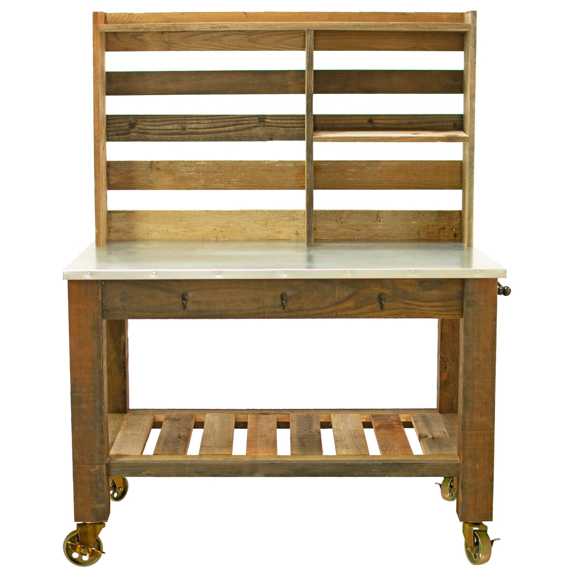 - Our Working Bench Potting Table comes with 2 shelves on the top for garden supplies or glassware. The bottom section is great for your gardening tools, work supplies, and dinner plates. Gardening with ease and potting your favorite flowers for your front yards, hedges, lawns, and backyard patio gardens. Versatility and style you can only get from a custom handmade furniture product in the US! Add a rustic potting table to your patio furniture.