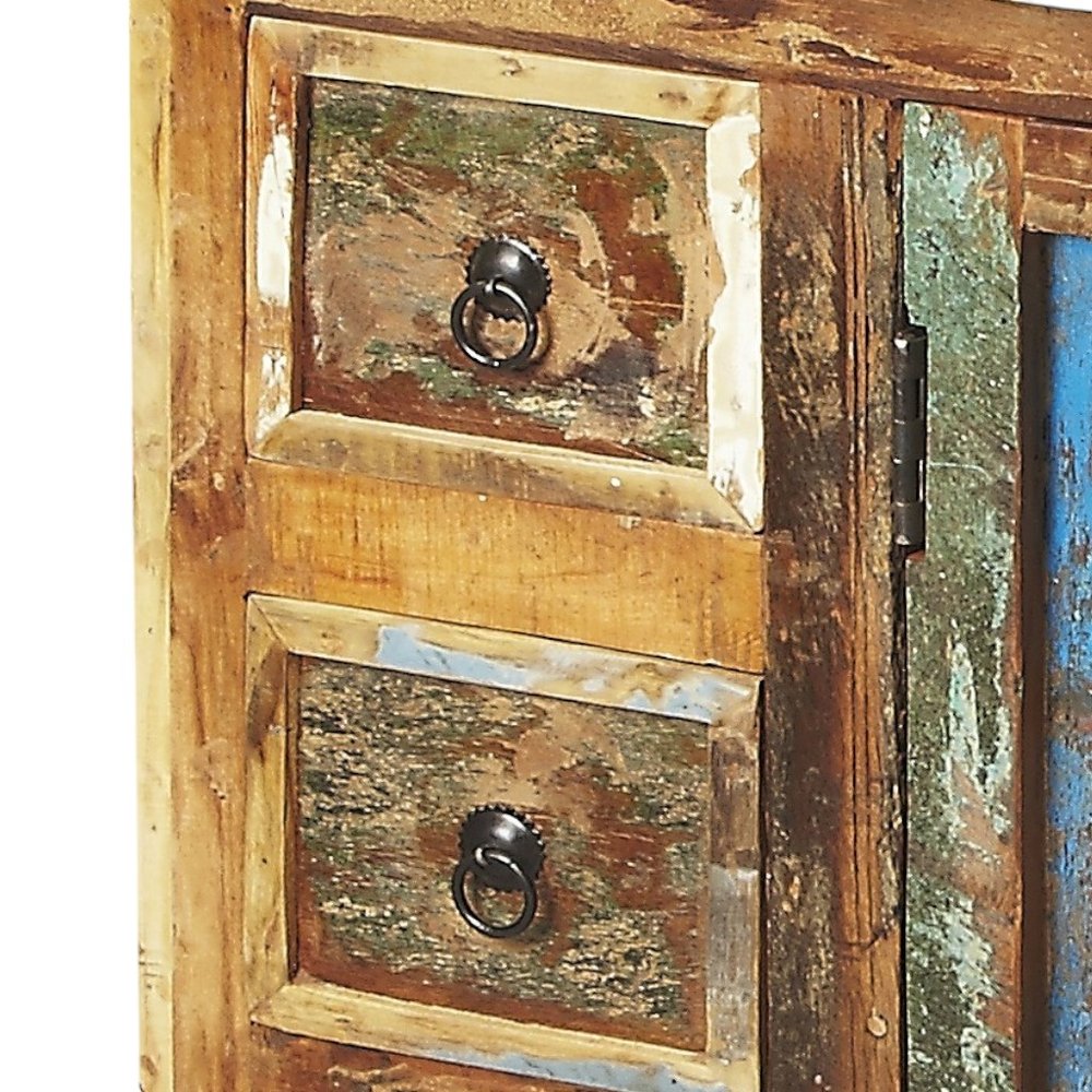 44" Brown Green and Gray Solid Wood Three Drawer Sideboard with Two Doors
