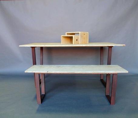 - Hand-made Furniture & Accessories - Made from Re-purposed Redwood, planned and cleaned for indoor, outdoor, patio, backyard, & garden use. Built by hand in the USA from Lee Display. Each Dining Room Table comes with a Bench and two wooden risers.
