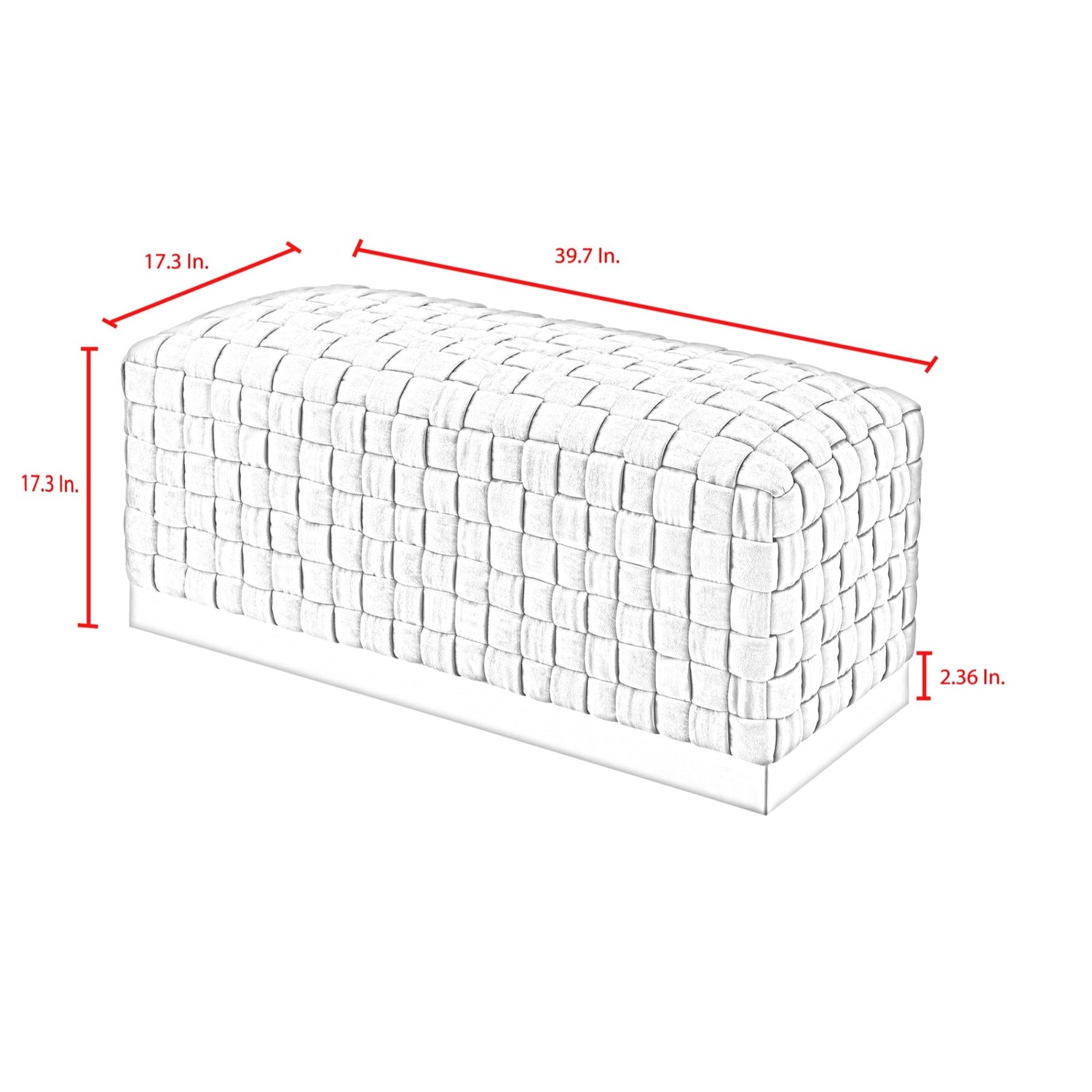 - MODERN DESIGN – Modern and chic velvet upholstered bench with rich tufted intricate woven pattern and stainless steel base in rectangular design provide gentle splendor while entertaining or relaxing. Enhance your room with this beautiful elegant bench and give your home a touch of luxury