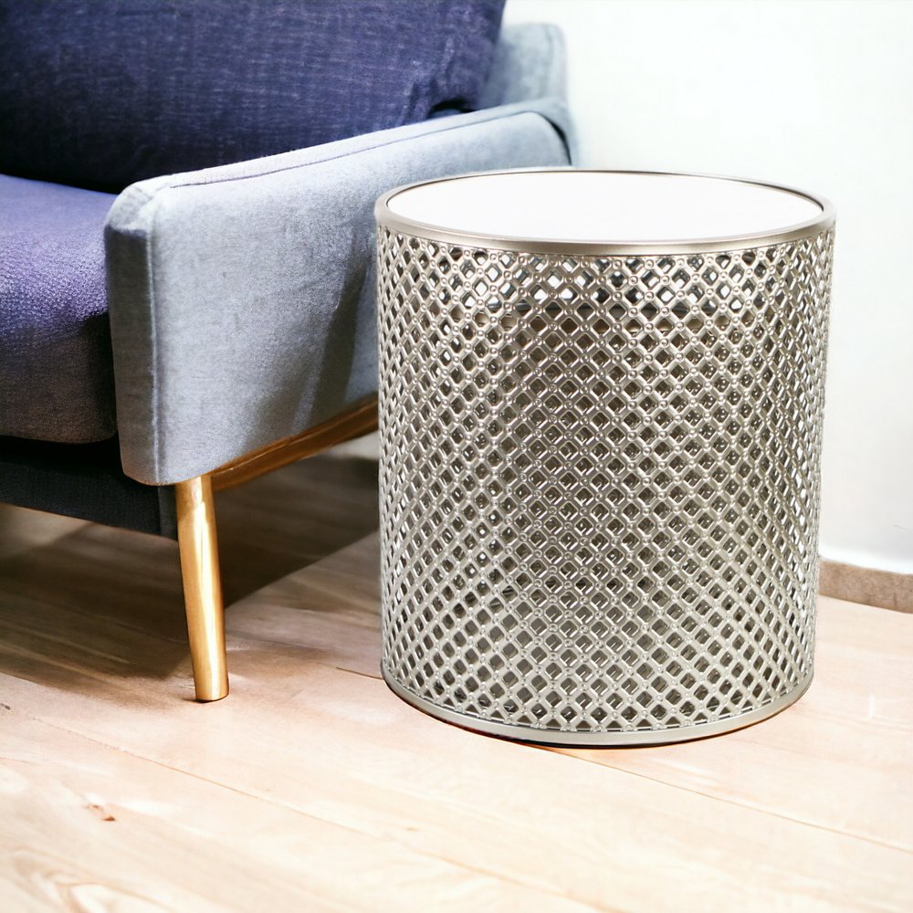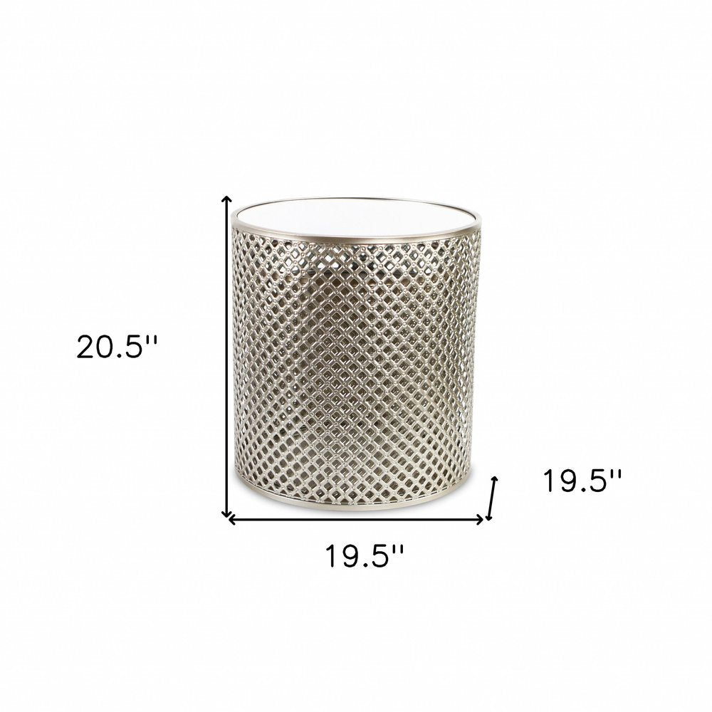 Set of Two 21" Silver And White Mirrored Round Mirrored Nested Tables