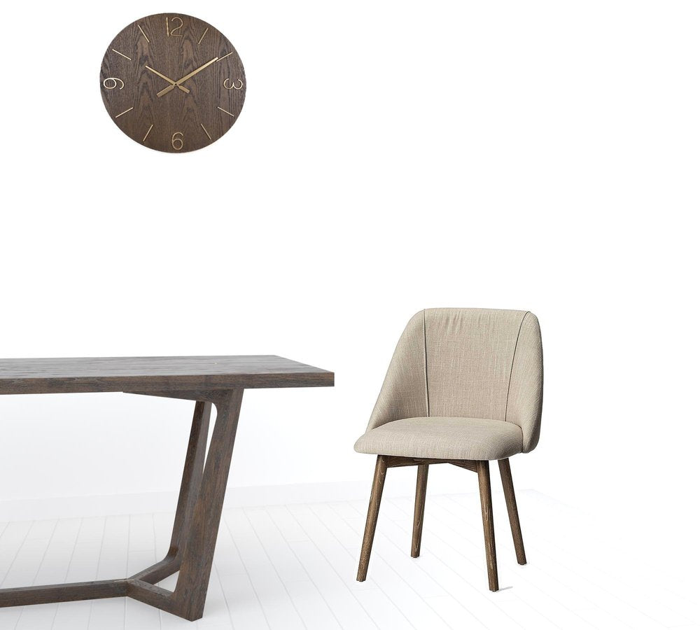 Set Of Two Cream And Brown Upholstered Fabric Side Chairs