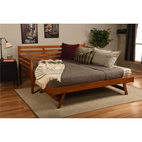 - Solid Wood Daybed Frame with Twin Pop-Up Trundle Bed in Walnut Finish