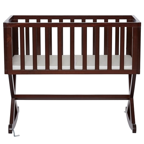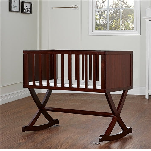 Solid Wood Rocking Baby Glider Cradle with Crib Mattress in Cherry Finish
